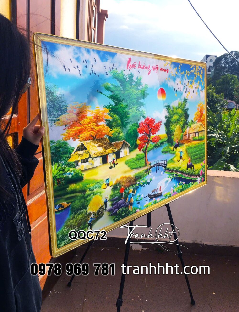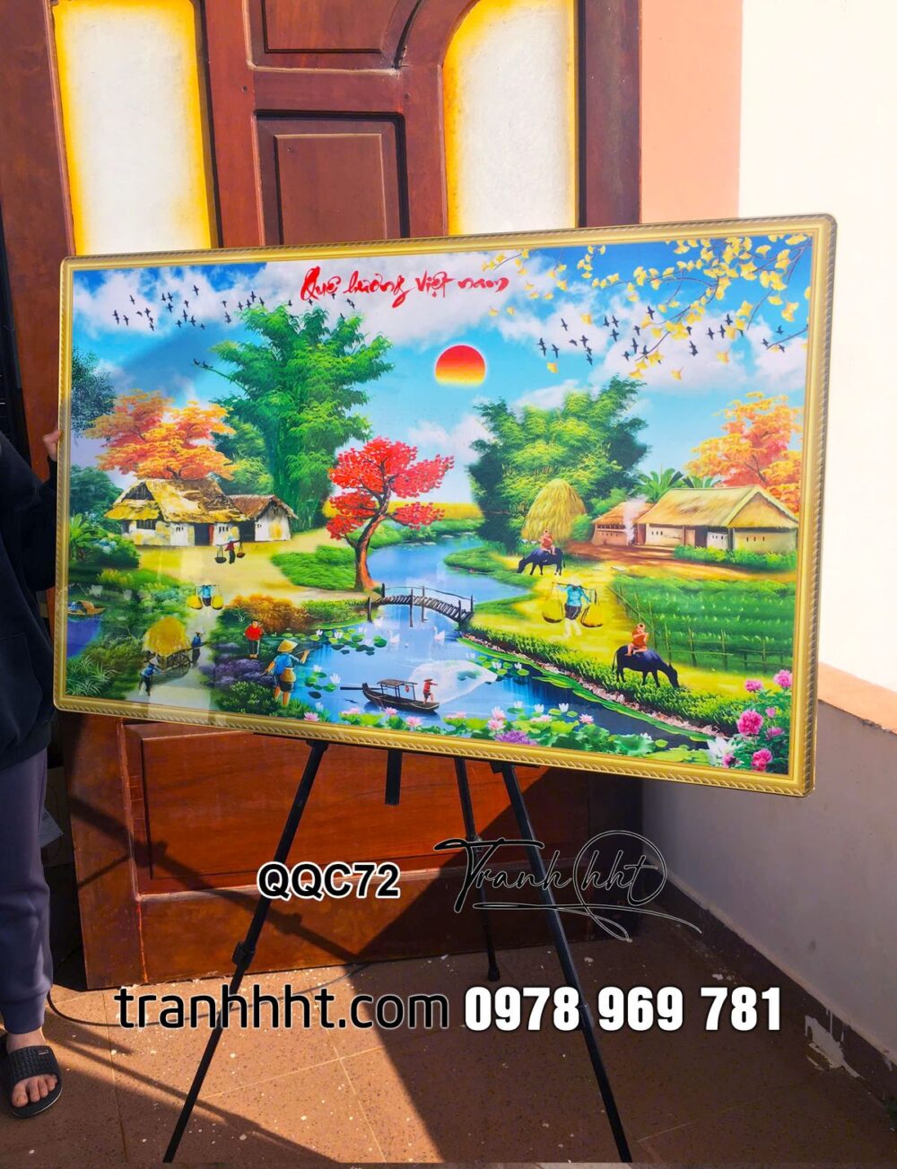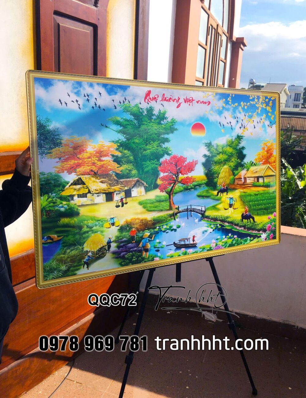 Tranh đồng quê Việt Nam, tranh đồng quê nông thôn việt nam treo tường, Tranh treo tường làng quê tráng gương QQC72