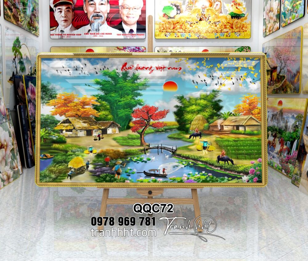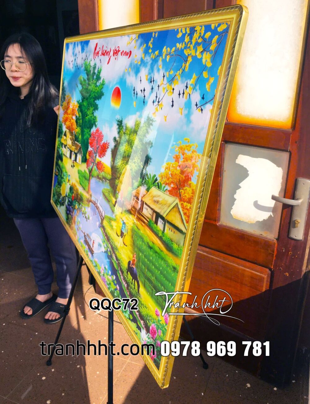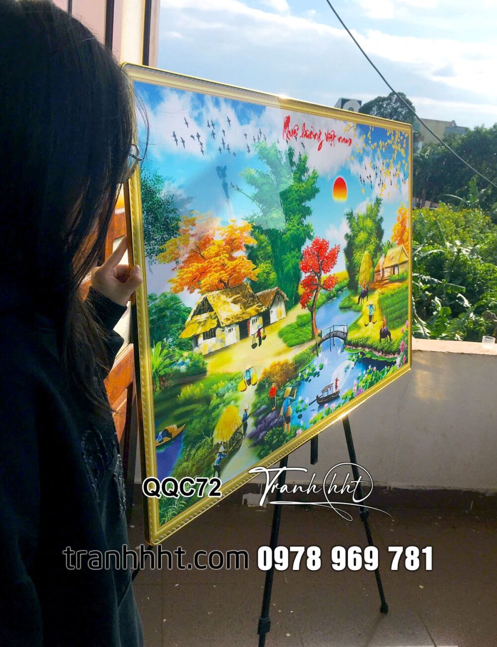 Tranh đồng quê Việt Nam, tranh đồng quê nông thôn việt nam treo tường, Tranh treo tường làng quê tráng gương QQC72