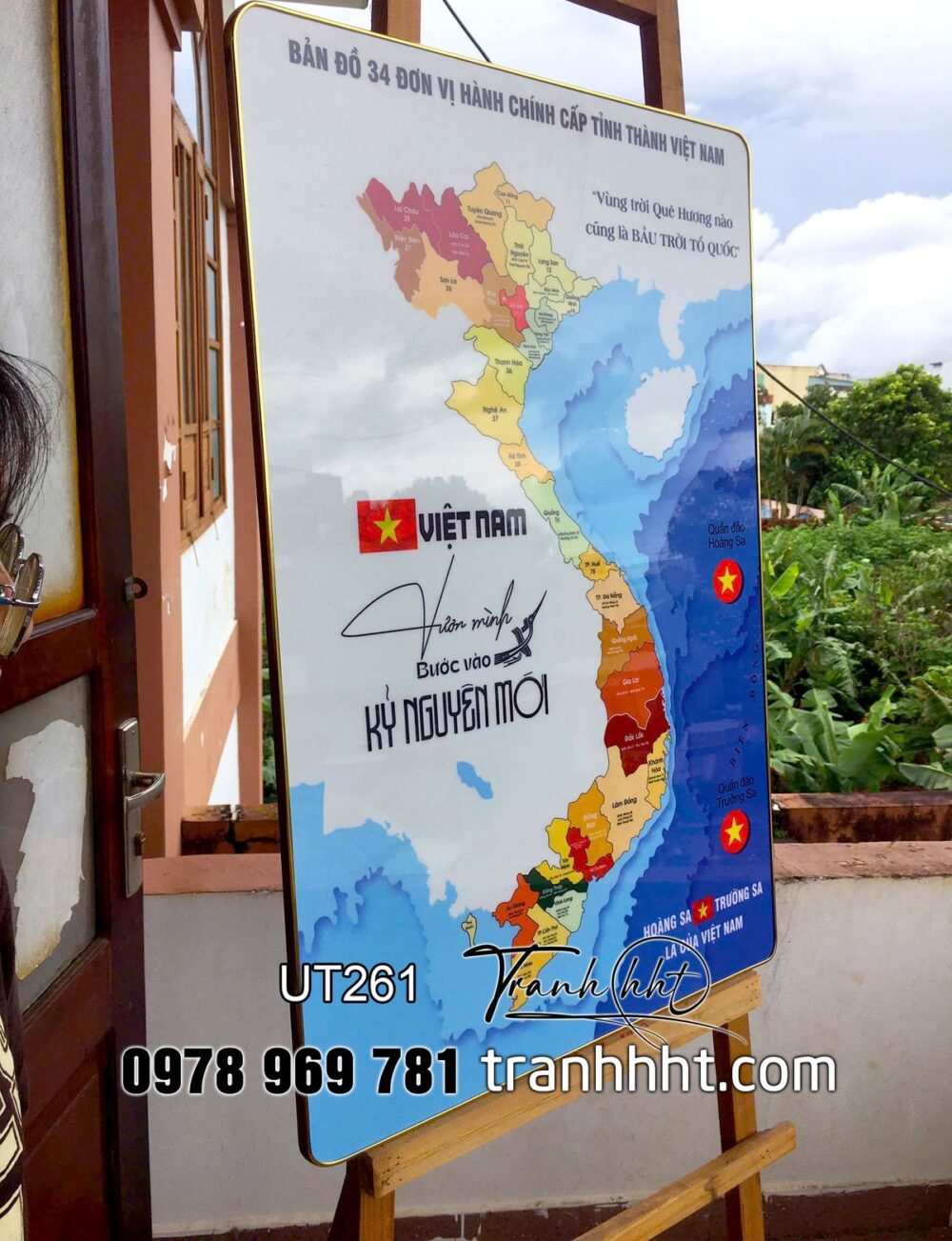 Bản đồ Việt Nam in 3d, Tranh bản đồ 34 tỉnh việt nam 3d tráng gương, bản đồ gỗ 3D tráng gương 34 tỉnh Việt nam UT261