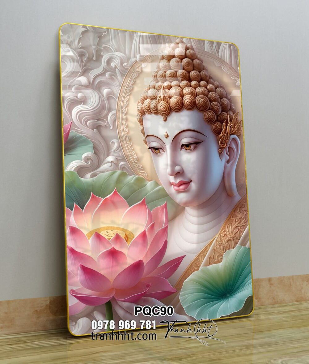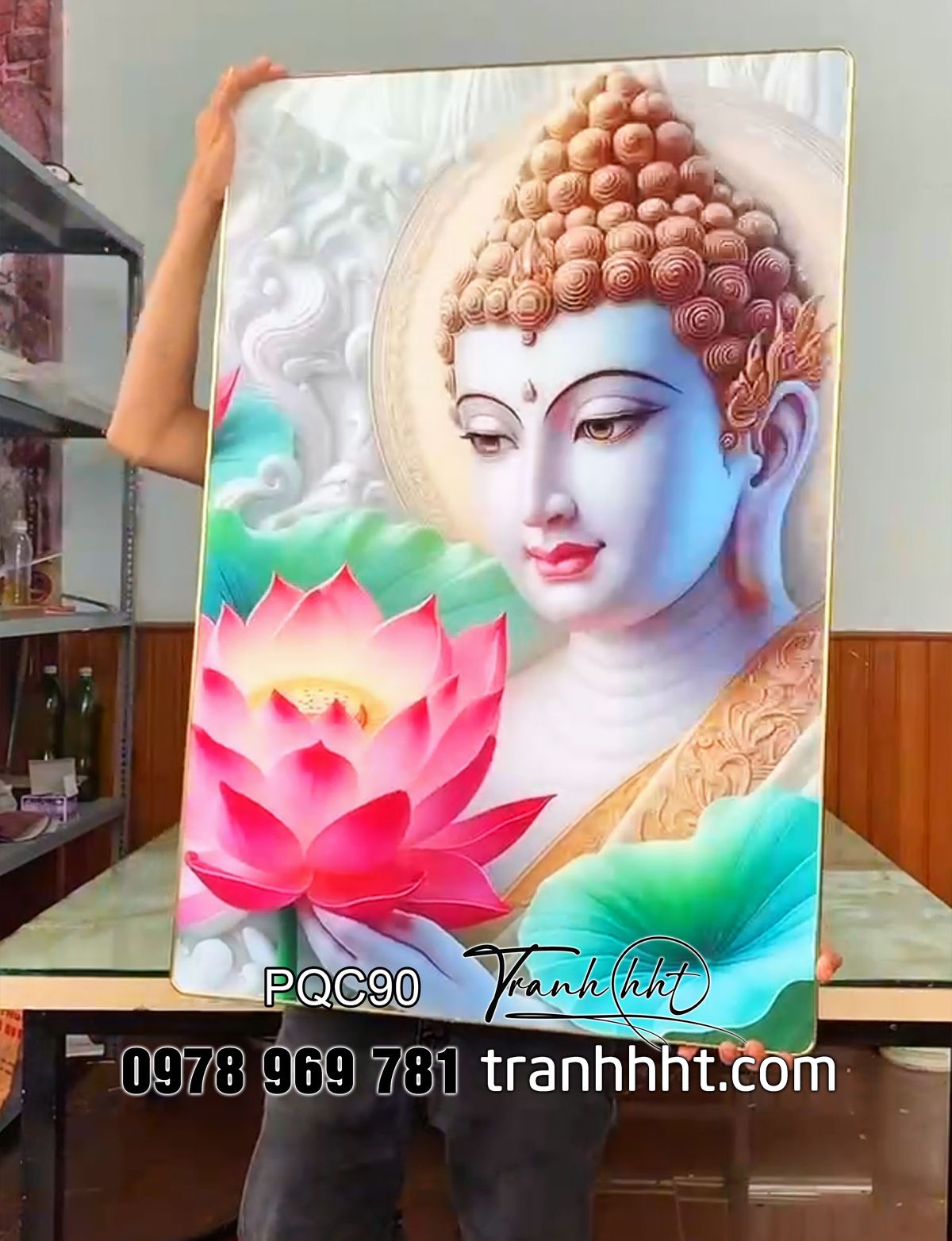 Khung hình Phật, ảnh Phật treo tường, Tranh treo tường Phật giáo Như Lai hoa sen tịnh tâm tráng gương PQC90