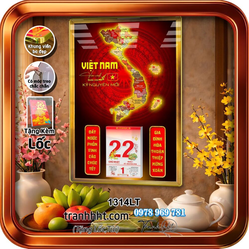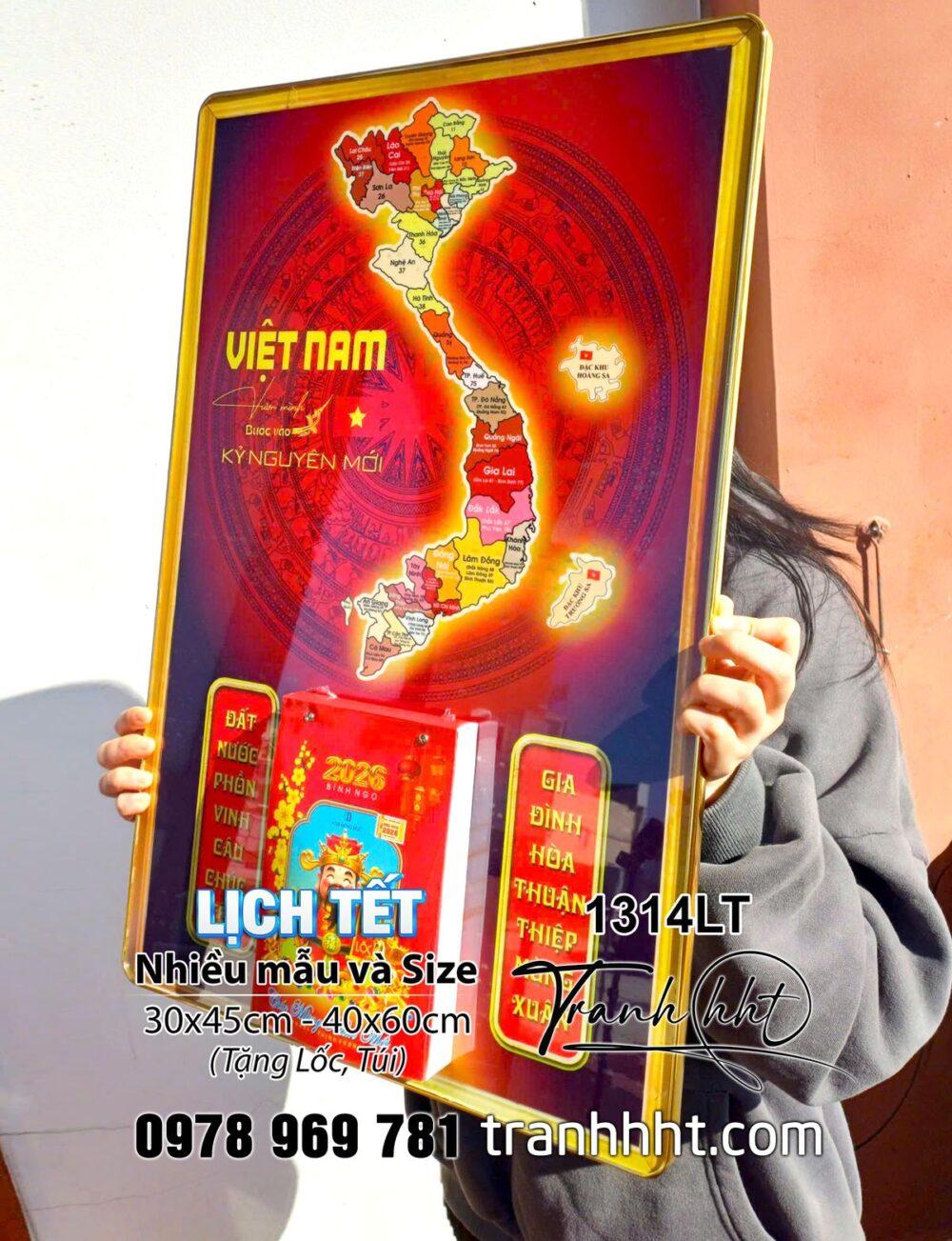 Khung tranh Bìa Lịch bản đồ việt nam, Lịch Tết bản đồ việt nam 34 tỉnh, Đốc lịch bản đồ Việt Nam, Lịch Tết 2026 treo tường, Đốc Lịch Tết, Lịch bloc treo tường 1314LT