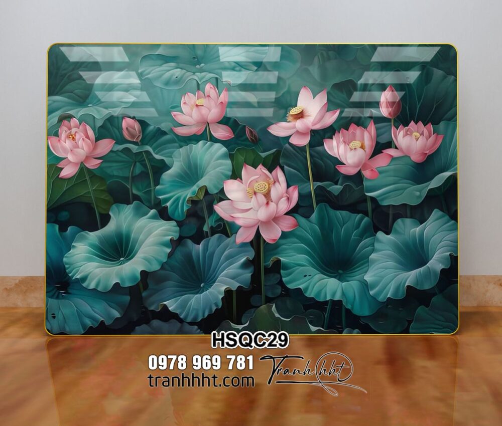Khung tranh hoa sen decor, Tranh hoa sen cá chép nét đẹp vĩnh hằng tráng gương treo tường HSQC29