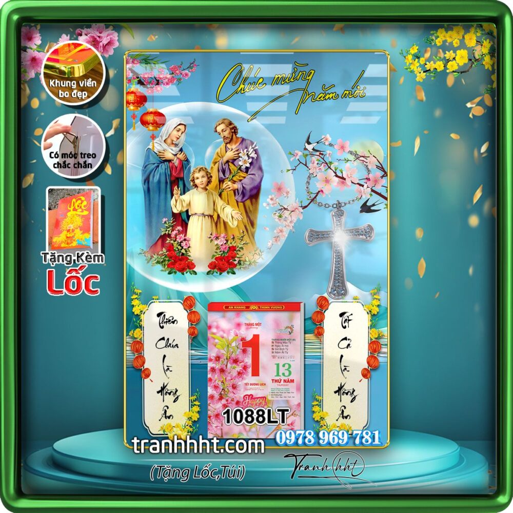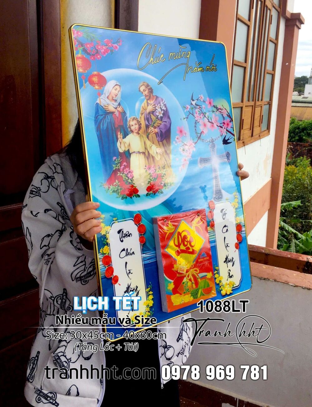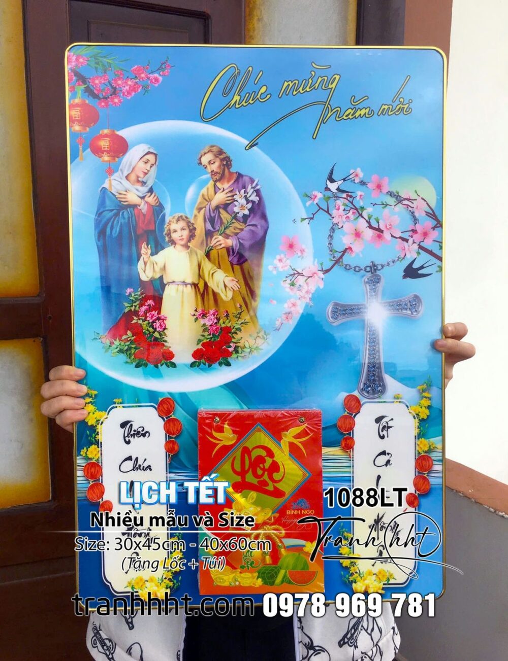 Khung tranh Lịch Tết Công Giáo đức mẹ Maria thánh đức tràn đầy, tranh chúa Giêsu gia đình nhà thánh tráng gương Laminate treo tường – Lịch gỗ tráng gương 2026 1088LT