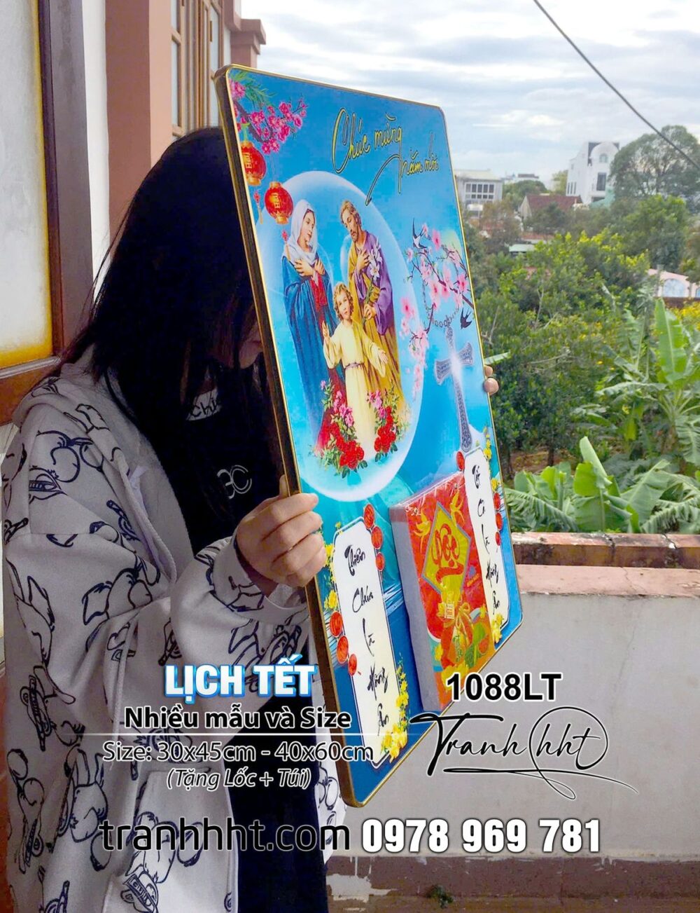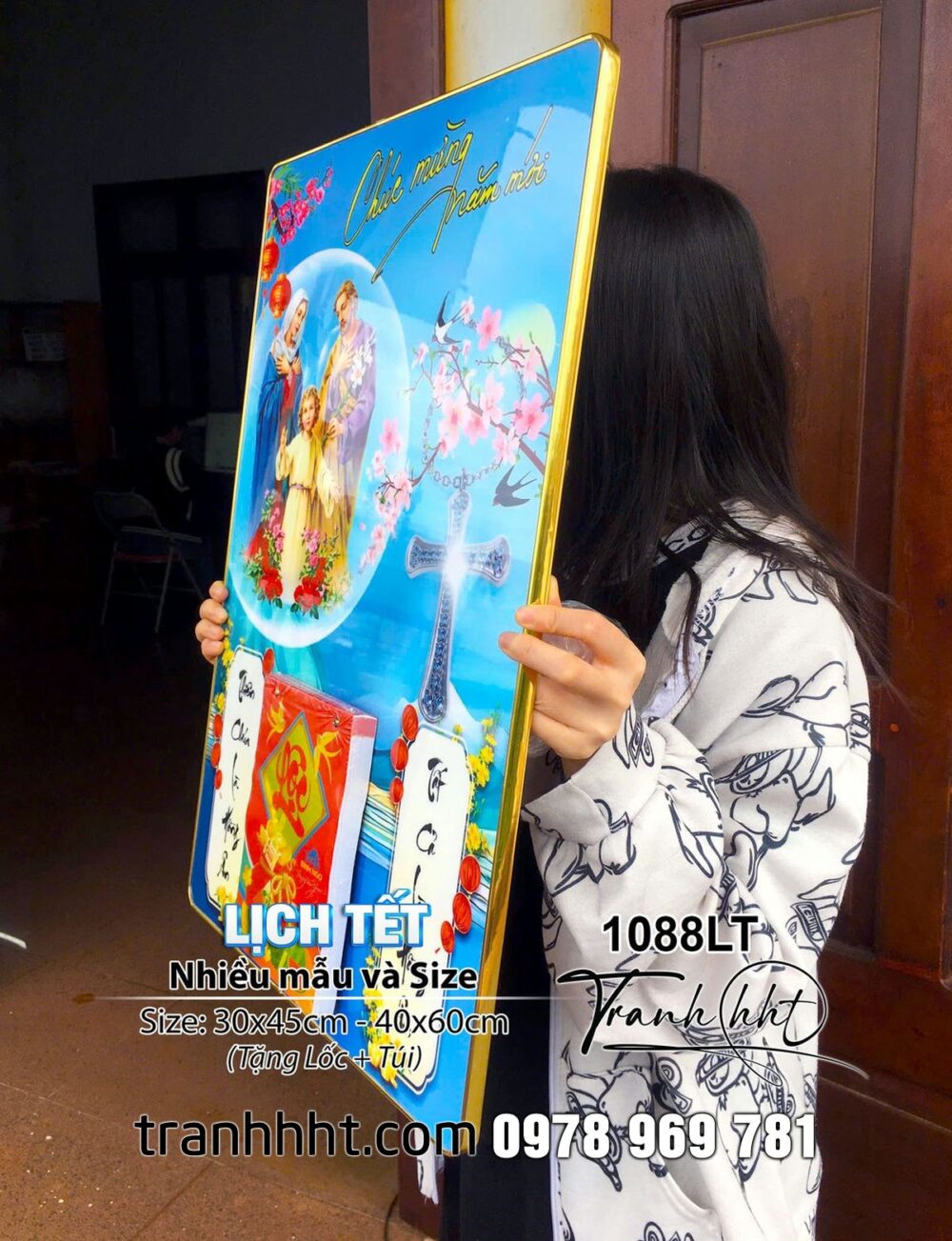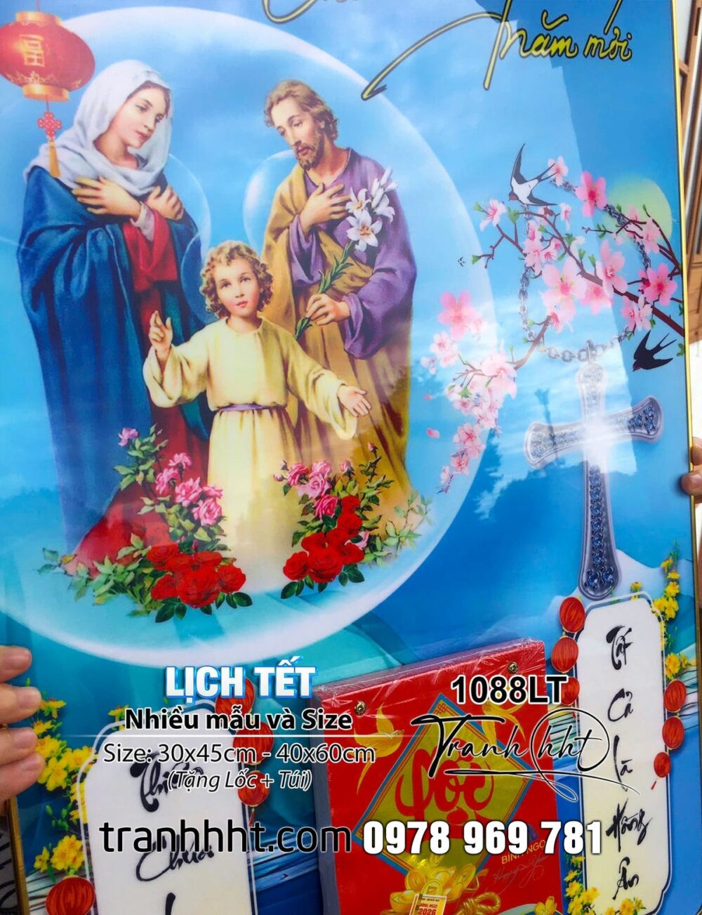 Khung tranh Lịch Tết Công Giáo đức mẹ Maria thánh đức tràn đầy, tranh chúa Giêsu gia đình nhà thánh tráng gương Laminate treo tường – Lịch gỗ tráng gương 2026 1088LT