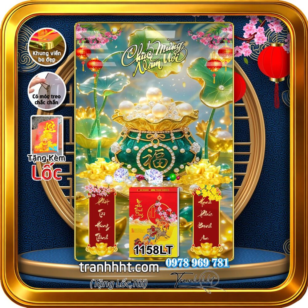 Đặt mua Khung tranh Lịch Tết Kim Tiền Tài Lộc túi vàng ngọc trai kim cương phong thủy hút tài lộc tráng gương Laminate treo tường - Lịch gỗ tráng gương 2026 1158LT