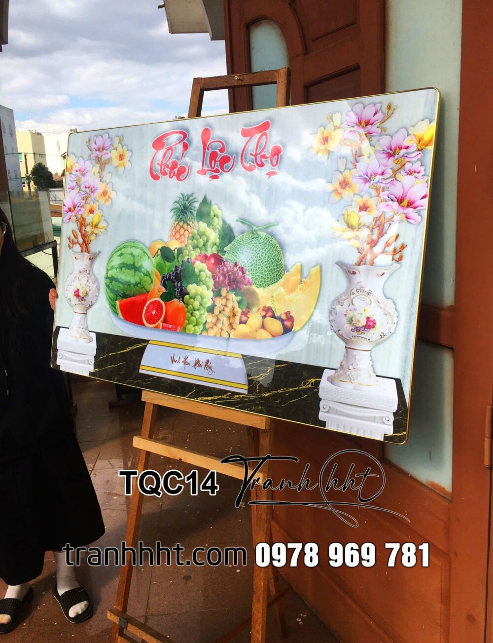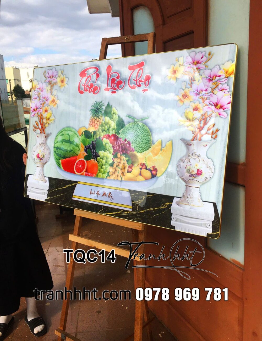 Khung tranh treo phòng thờ bàn thờ tủ thờ gia tiên, Tranh treo tường phòng thờ phúc lộc thọ tráng gương TQC14