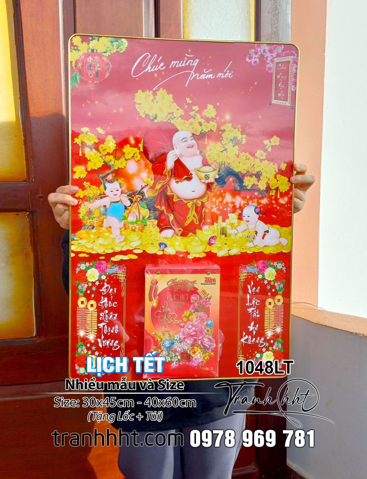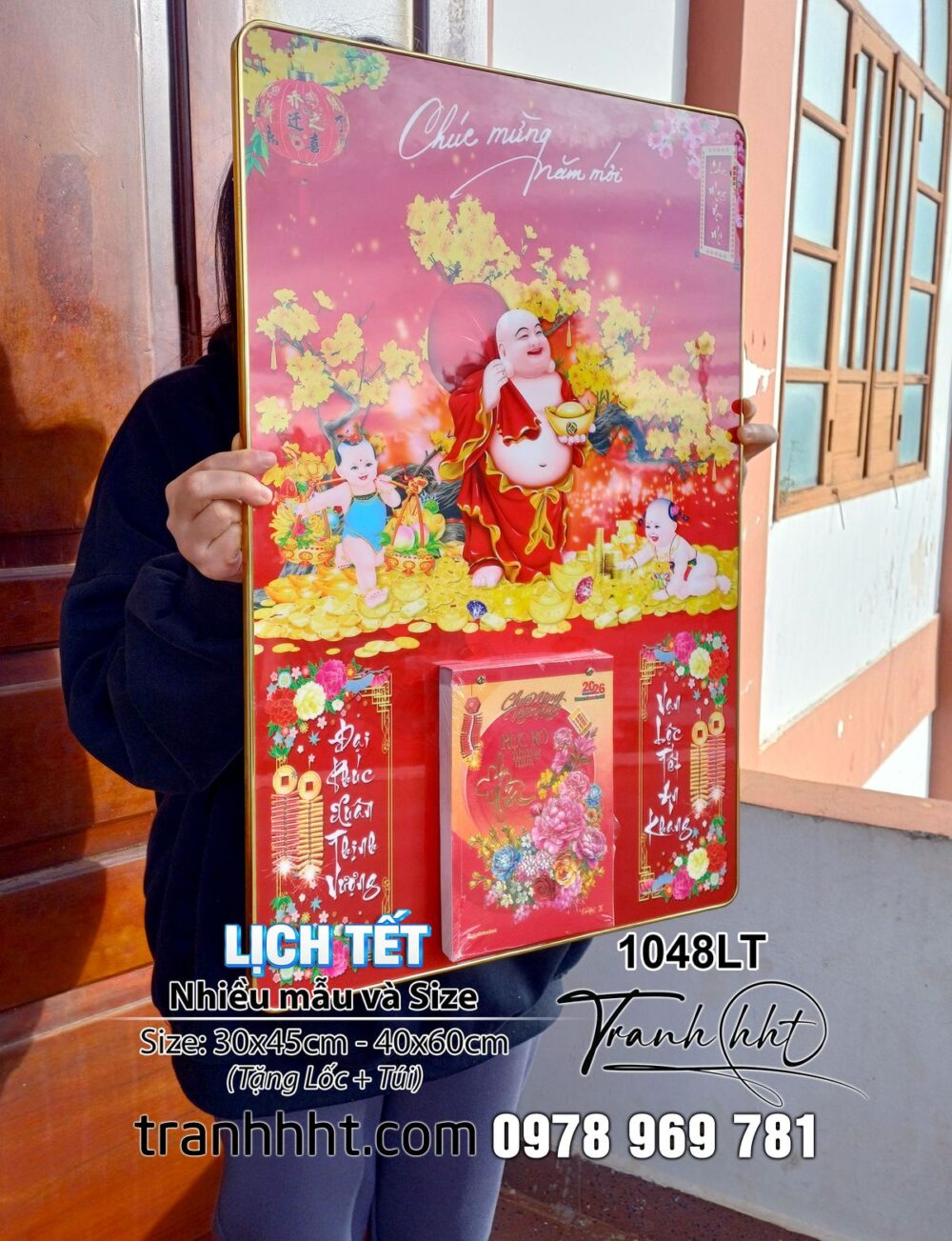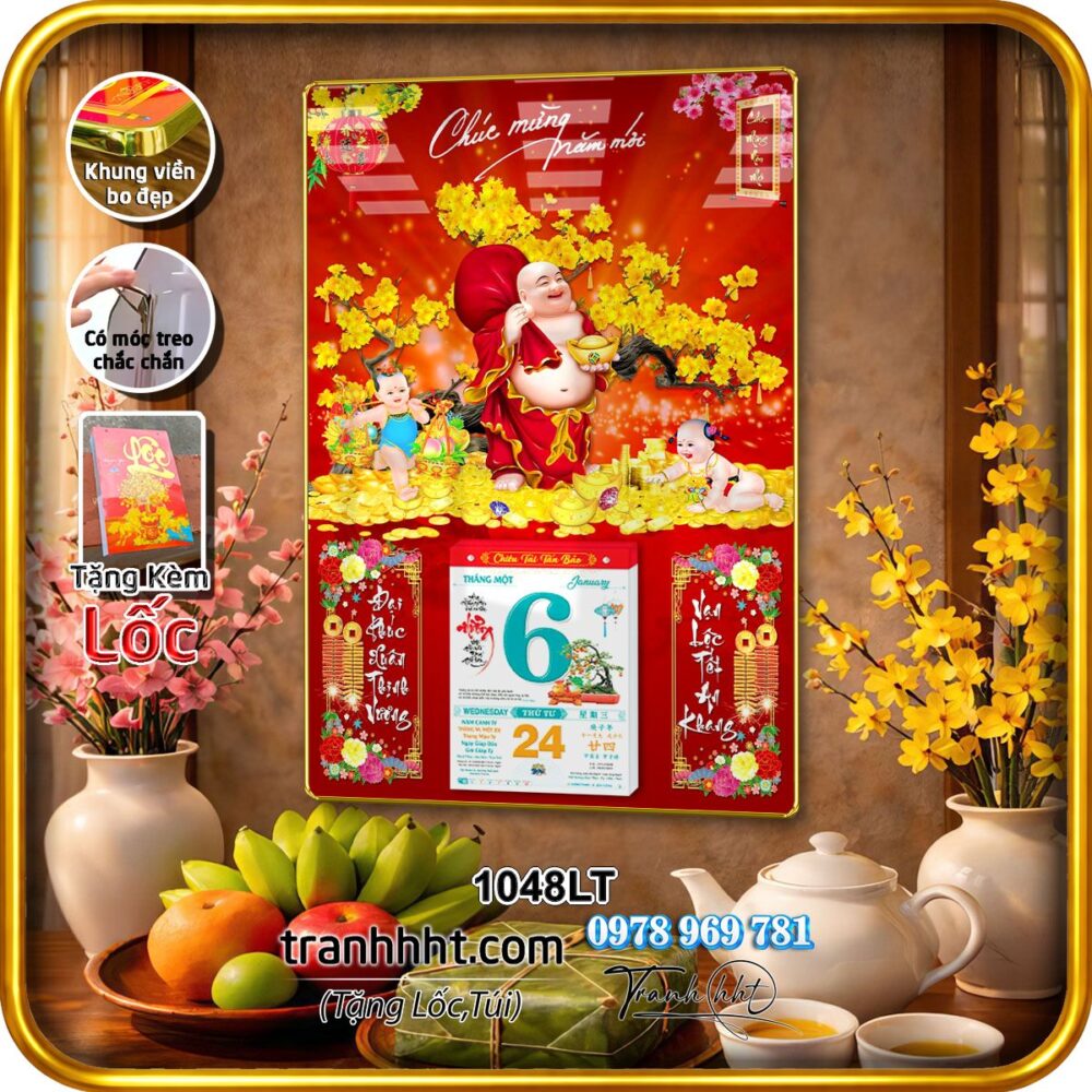 Lịch Tết Tài Lộc Phật Di Lạc vàng phát tài phát lộc hạnh phúc trọn vẹn tráng gương Laminate treo tường – Lịch gỗ tráng gương 2026 1048LT