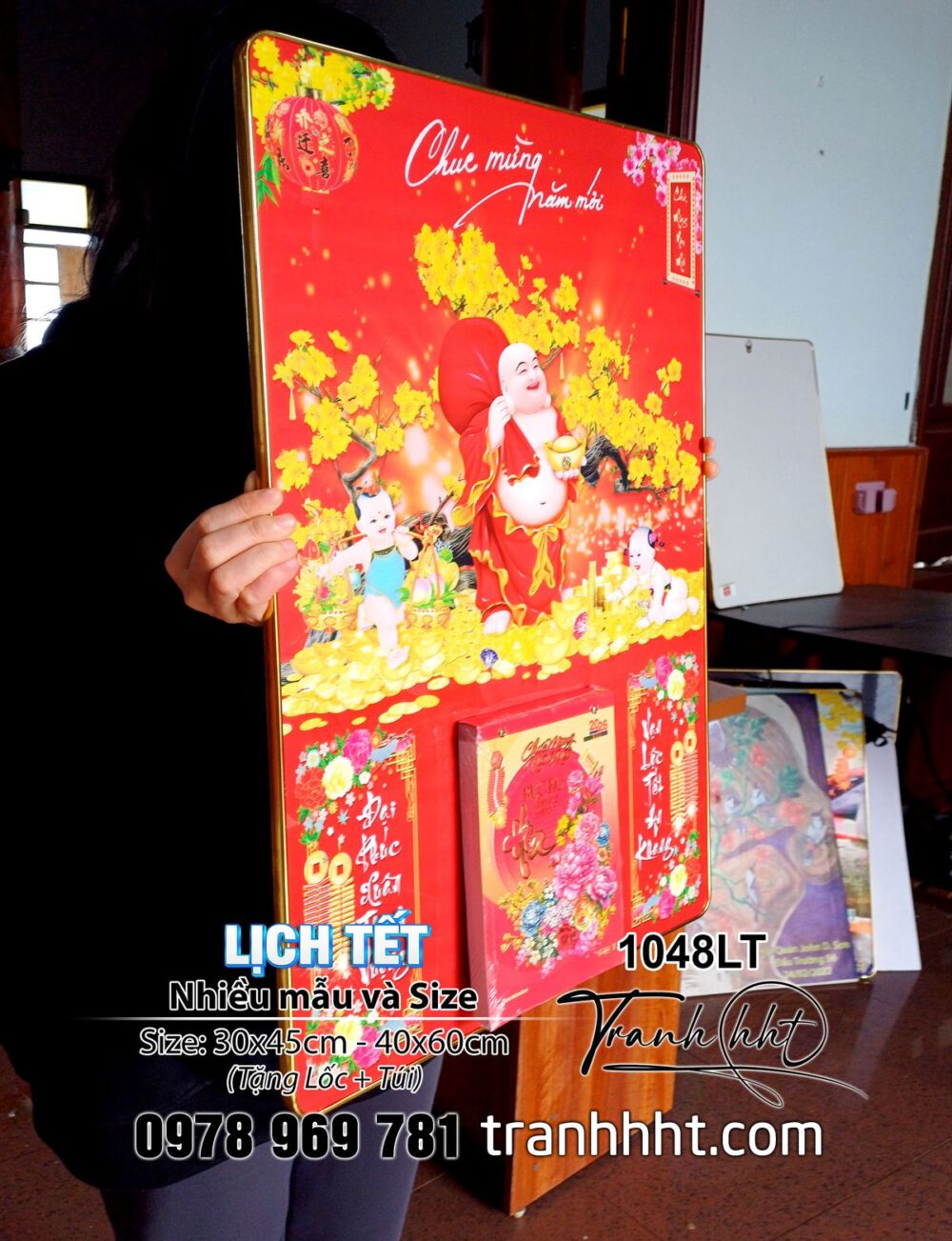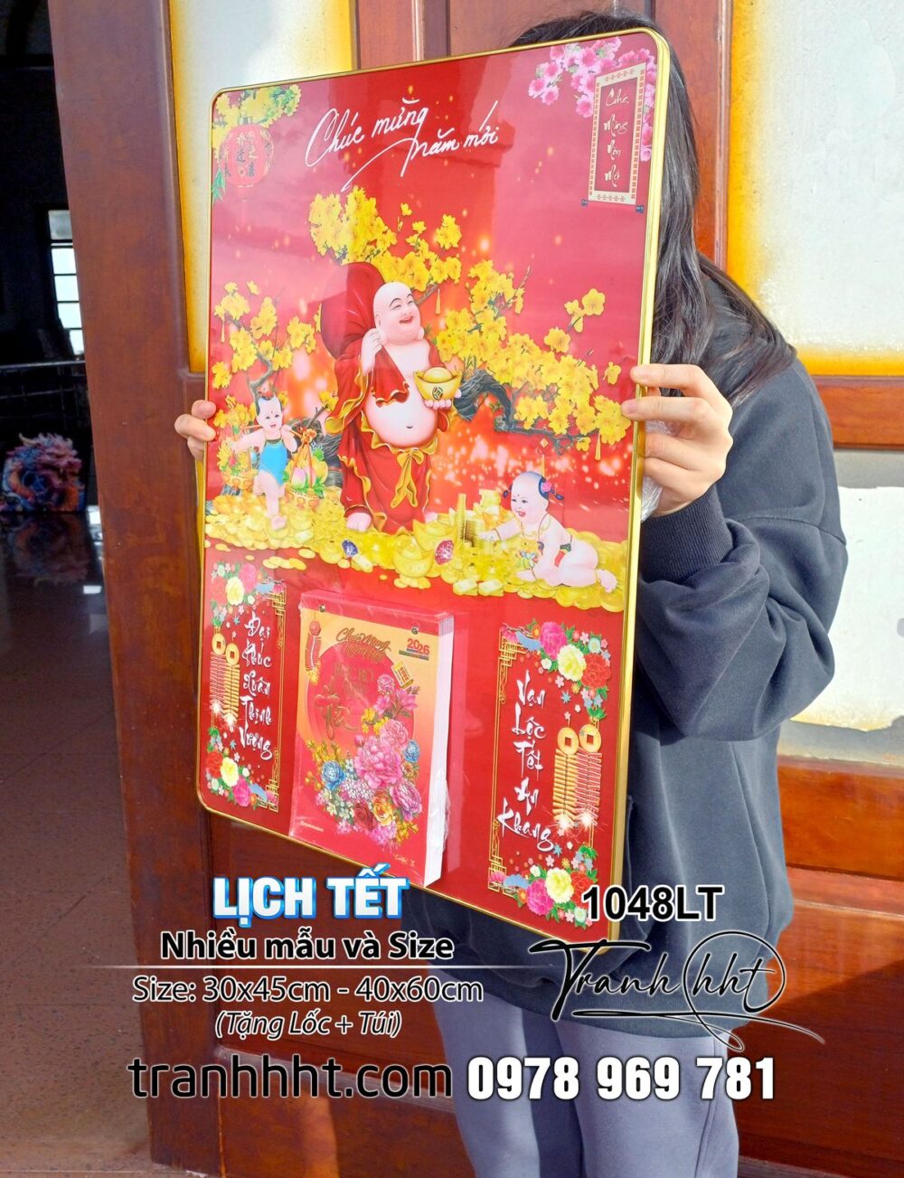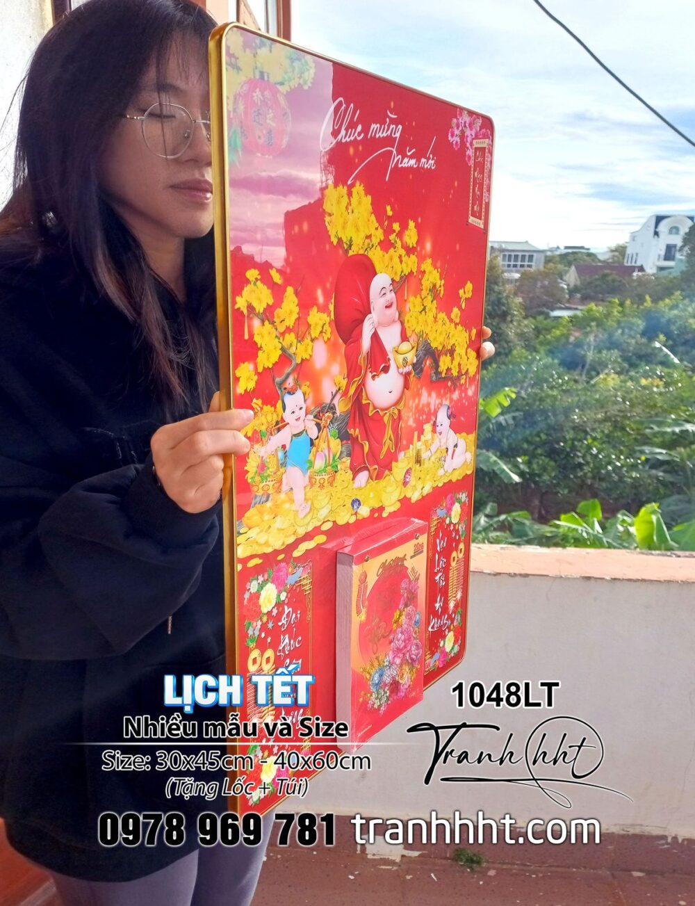 Lịch Tết Tài Lộc Phật Di Lạc vàng phát tài phát lộc hạnh phúc trọn vẹn tráng gương Laminate treo tường – Lịch gỗ tráng gương 2026 1048LT