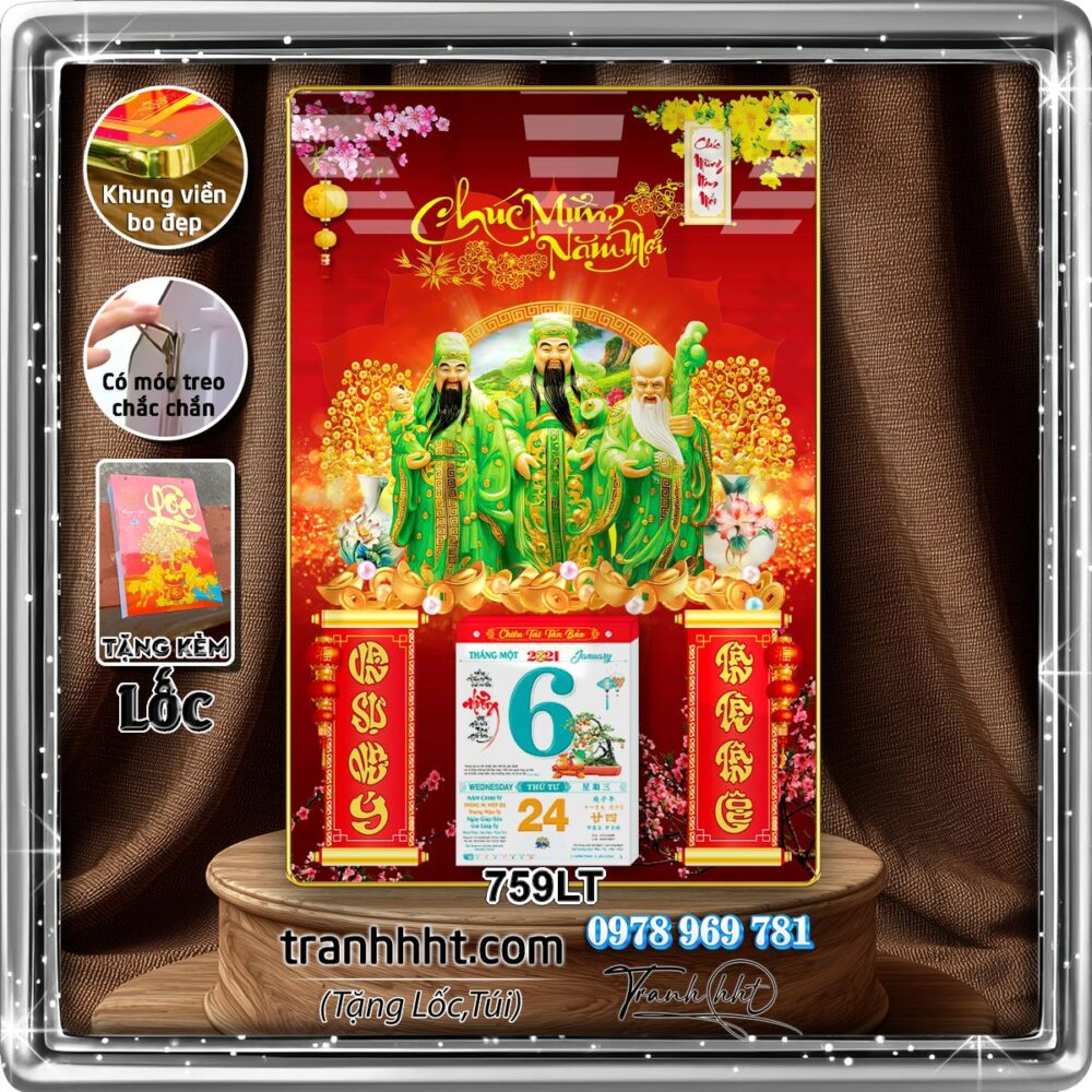 Lịch Tết Tài Lộc phát tài Phúc Lộc Thọ tráng gương Laminate treo tường – Lịch gỗ tráng gương 2026 759LT