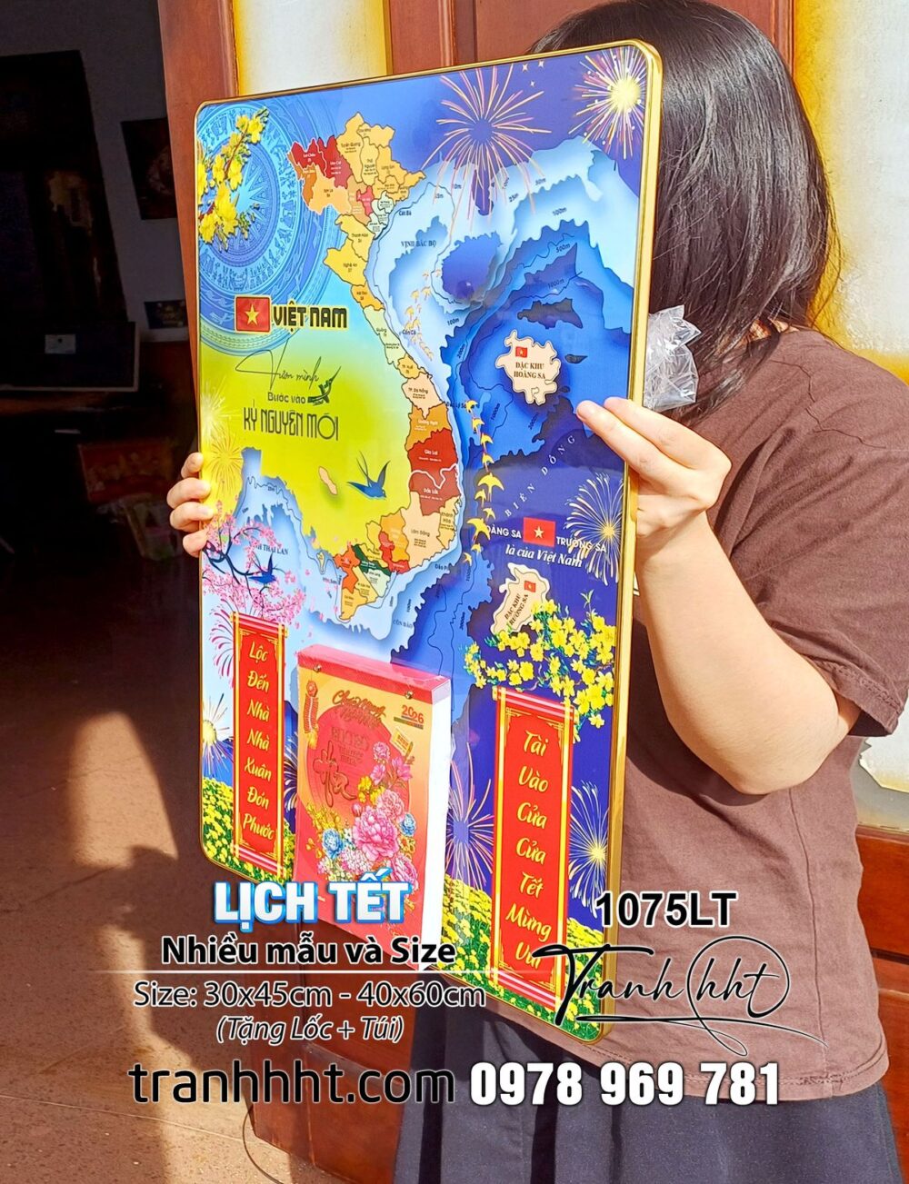 Lịch bản đồ việt nam, Lịch Tết bản đồ 34 tỉnh thành, Tranh lịch bản đồ Việt Nam treo tường, Lịch Tết 2026, Đốc Lịch Tết, Lịch bloc 1075LT