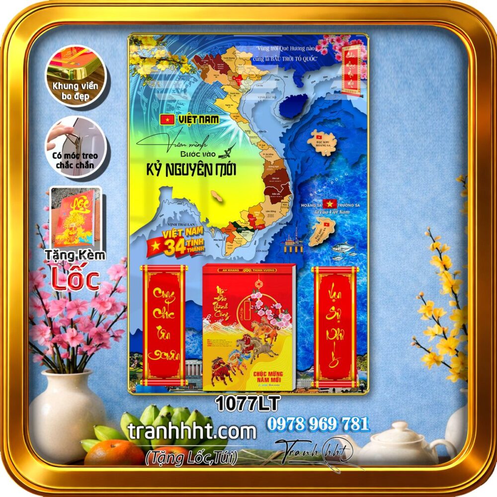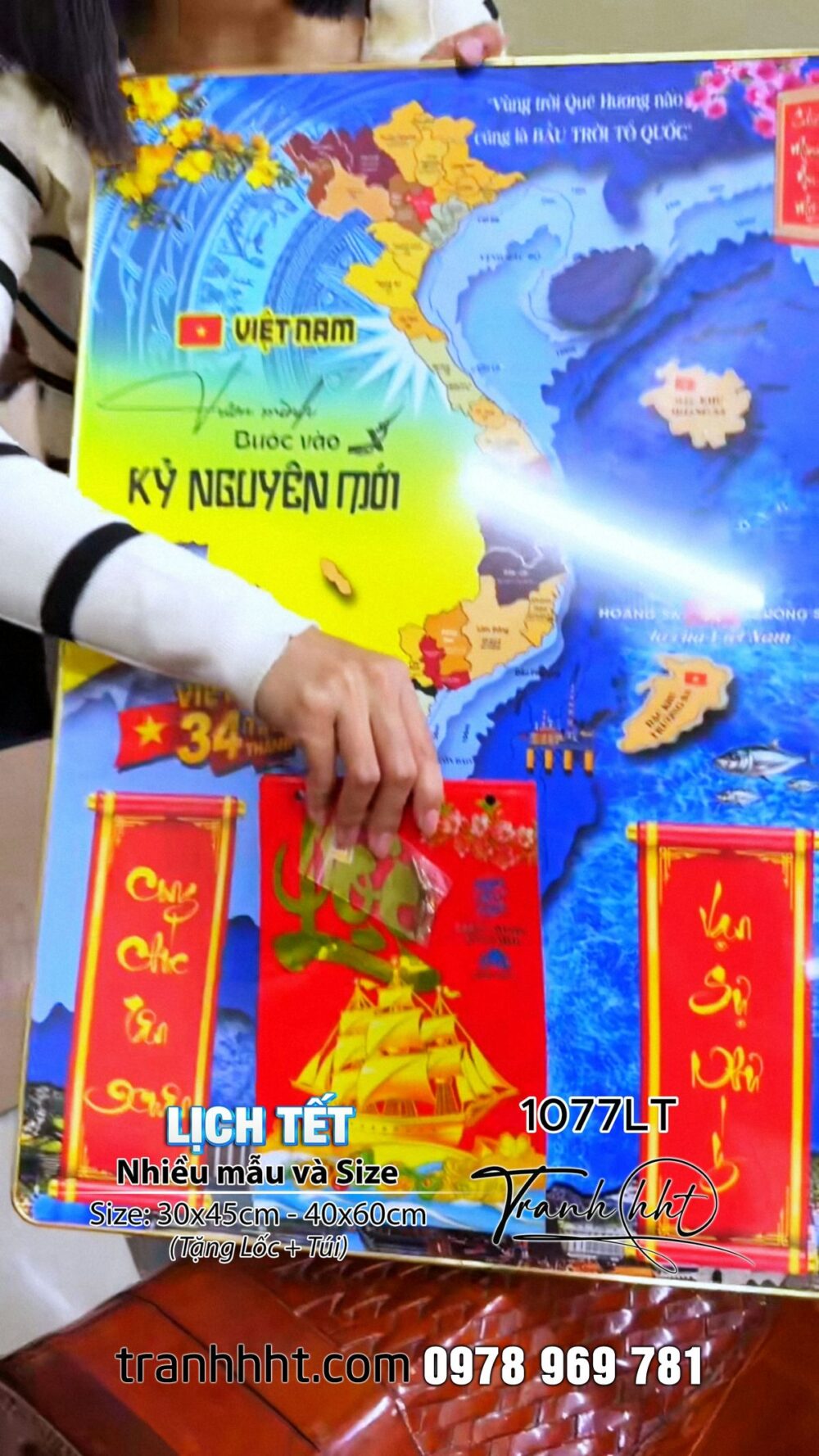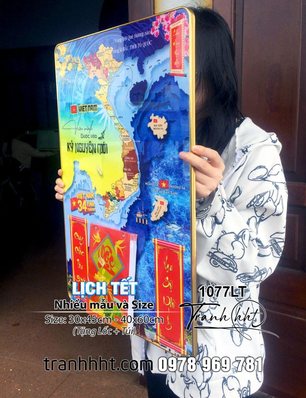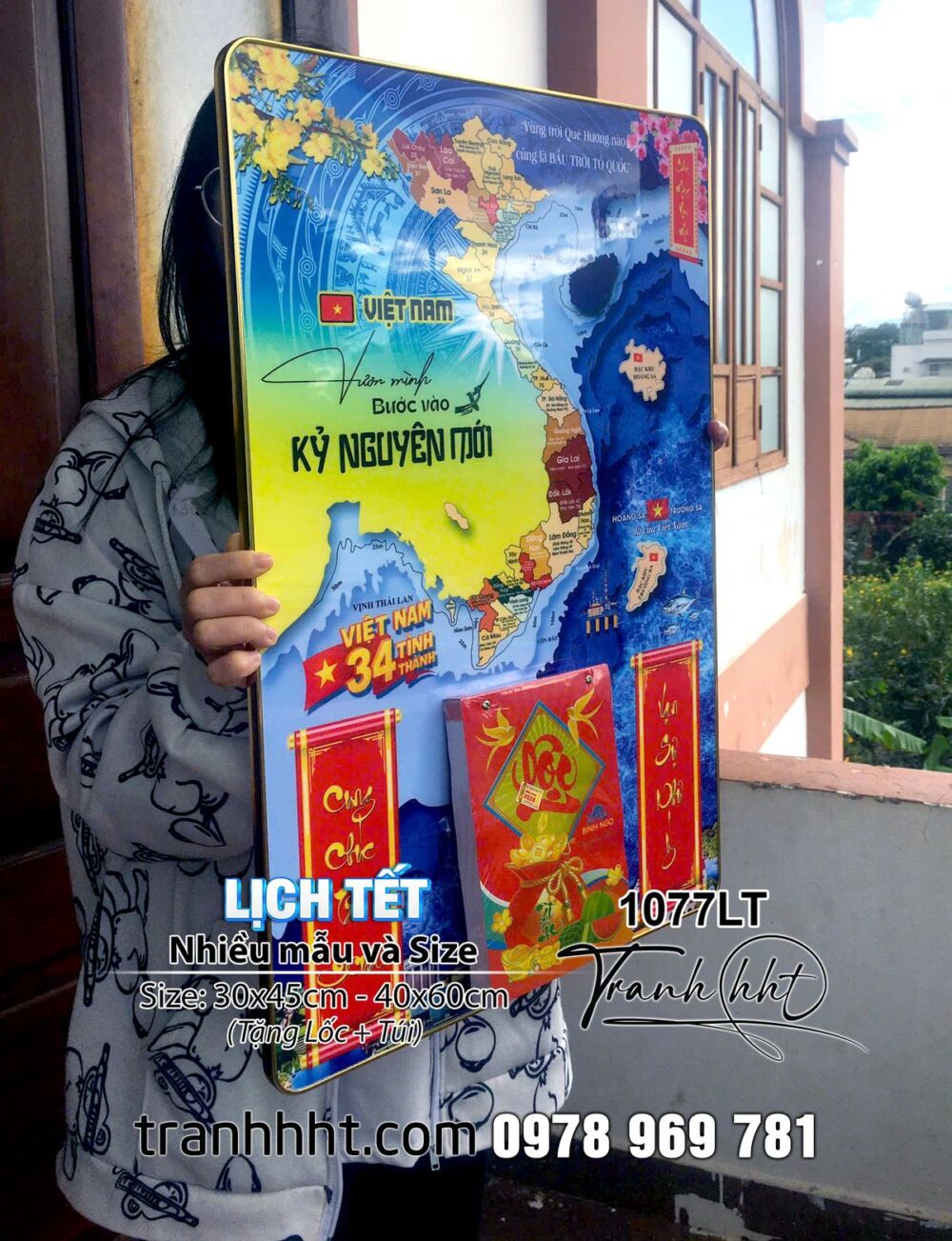 Lịch bản đồ việt nam treo tường, Lịch Tết bản đồ 34 tỉnh, bản đồ Việt Nam, Khung Lịch Tết 2026, Đốc Lịch Tết bản đồ 34 tỉnh thành, Lịch bloc 1077LT