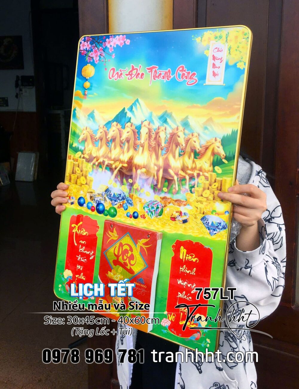 Đặt mua Lịch Tết Ngựa mã đáo thành công, lịch ngựa bát mã tài lộc phong thủy phát lộc tráng gương Laminate treo tường - Lịch gỗ tráng gương 2026 1150LT
