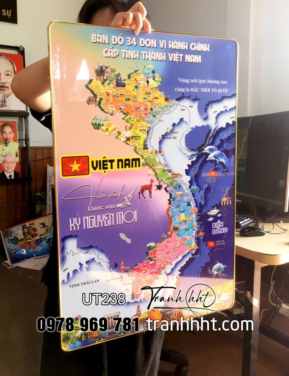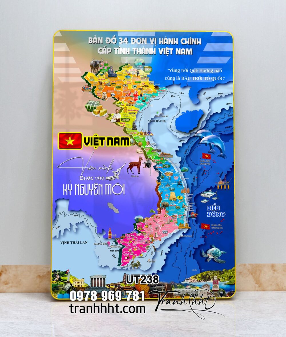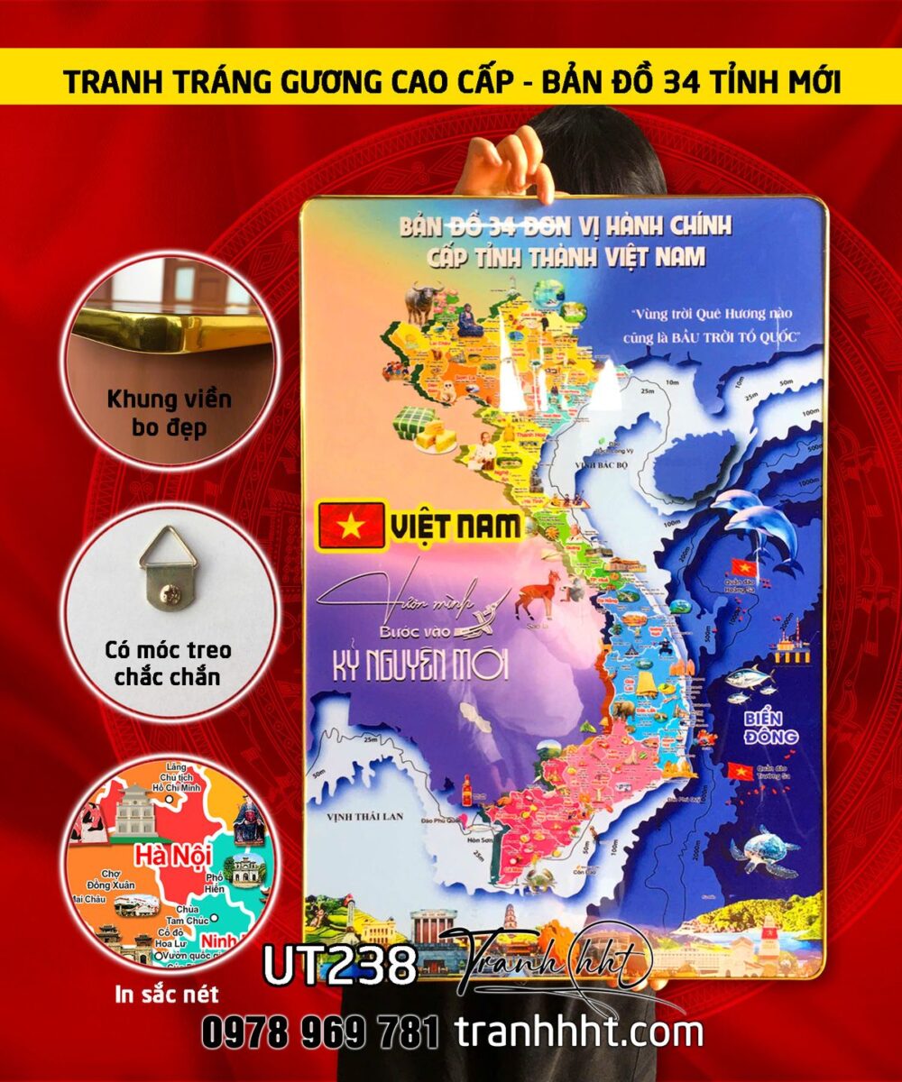 Đặt mua Tranh bản đồ 34 tỉnh việt nam 3d tráng gương, bản đồ gỗ 3D tráng gương 34 tỉnh Việt nam, bản đồ việt nam treo tường, Khung ảnh bản đồ Việt Nam 34 tỉnh thành tráng gương UT238
