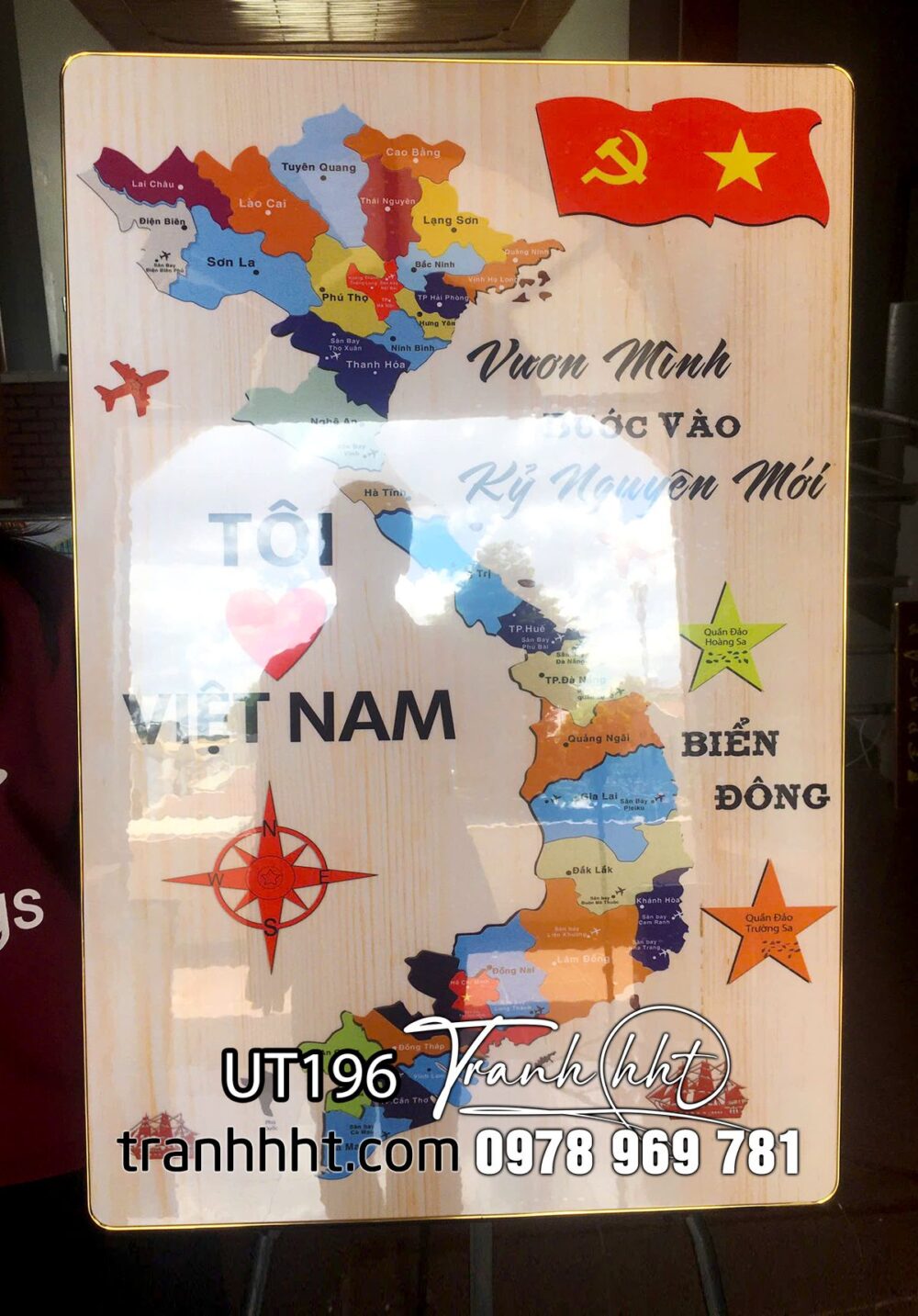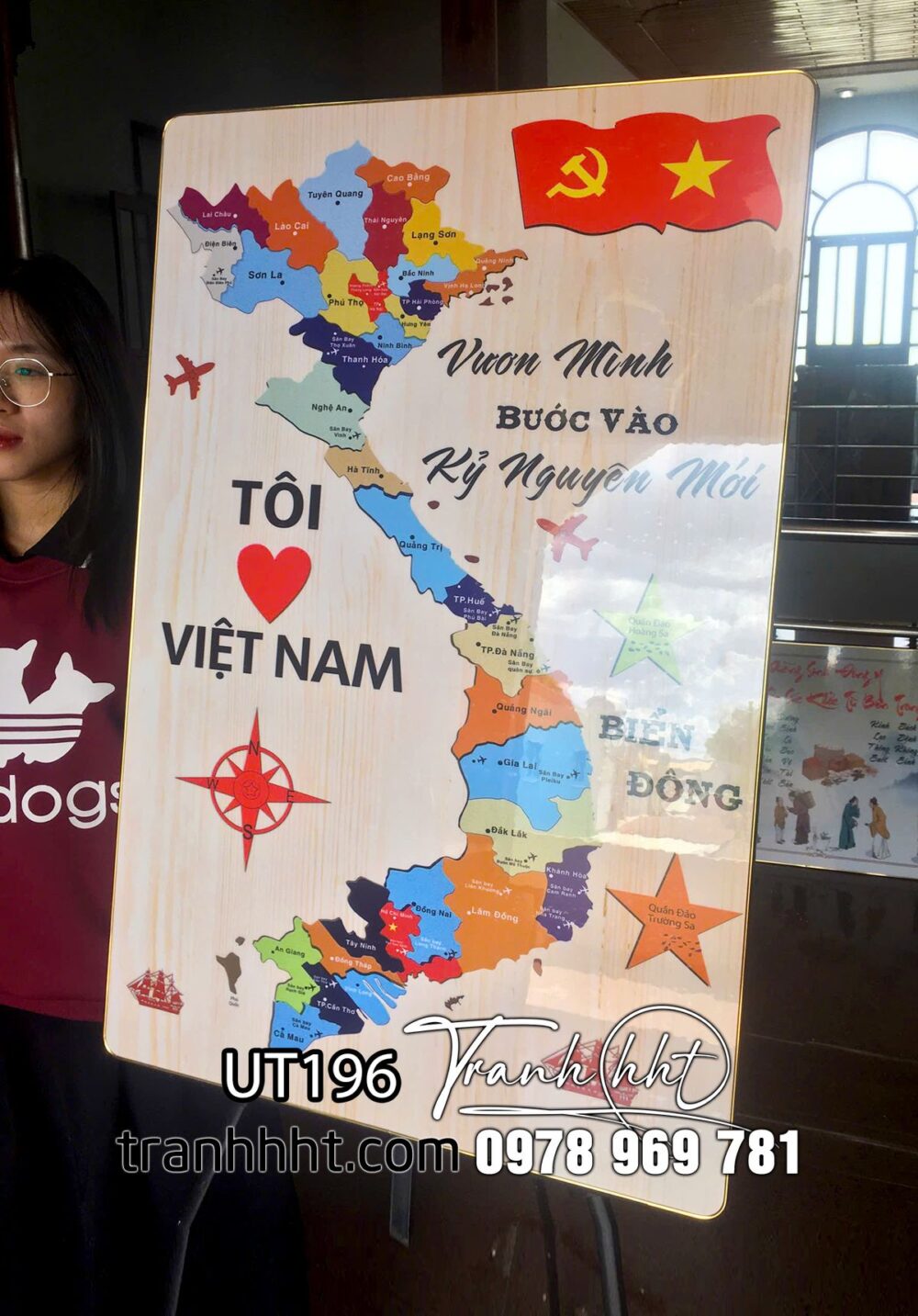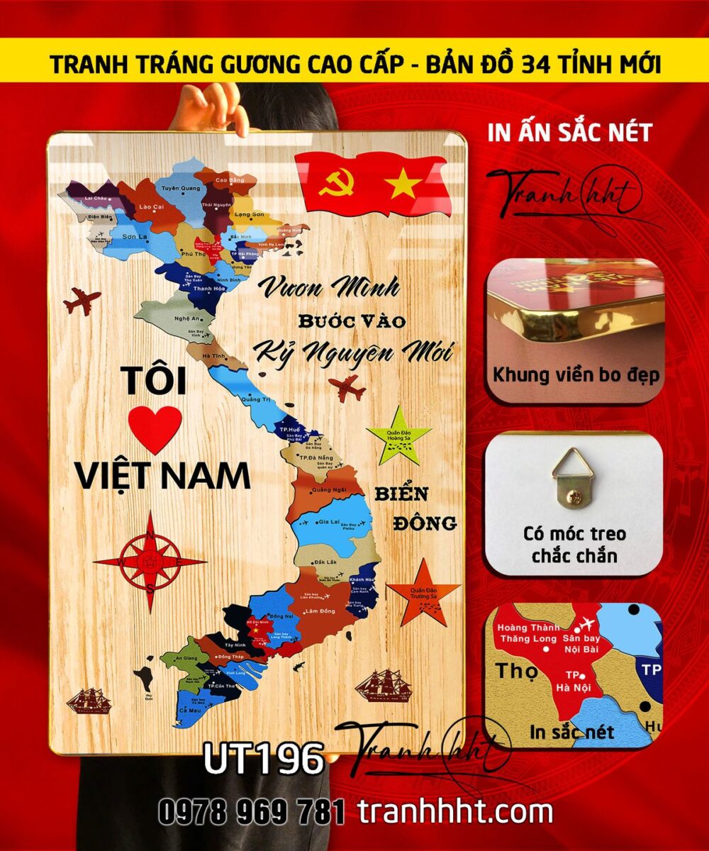 Tranh bản đồ việt nam treo tường, bản đồ việt nam 34 tỉnh, tranh Việt Nam tráng gương UT196