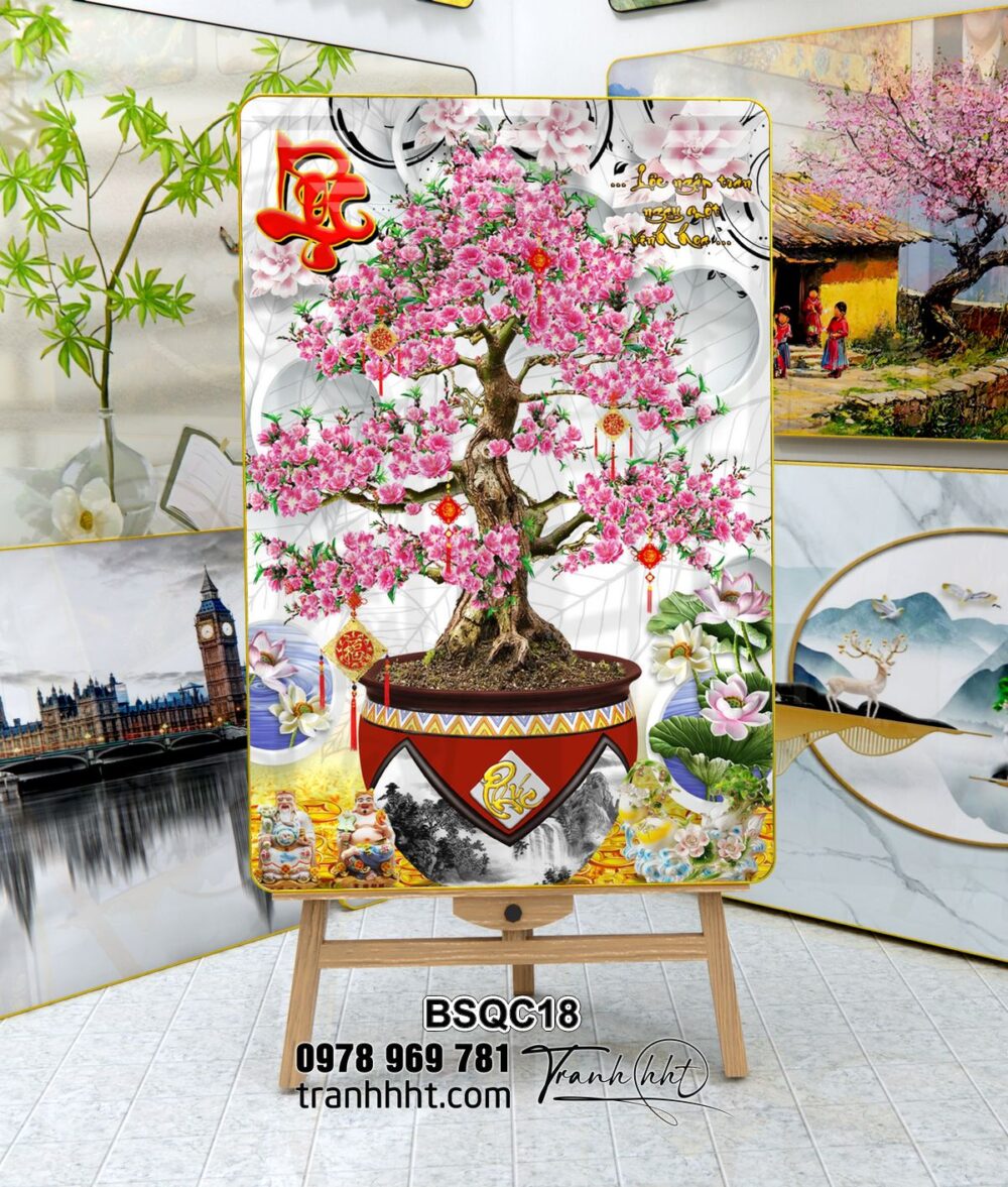 Tranh Bonsai Tết BSQC18
