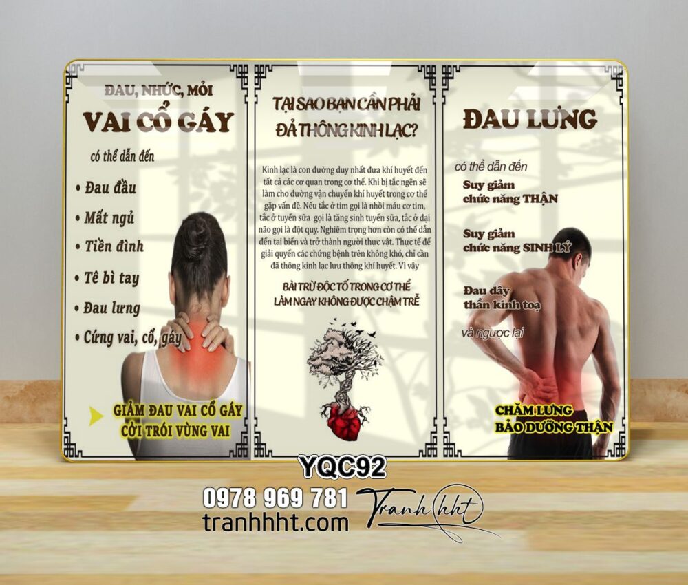 Đặt mua Tranh cổ vai gáy, tranh y khoa trị liệu, Tranh Y khoa đau cổ vai gáy đau lưng tráng gương treo tường YQC92