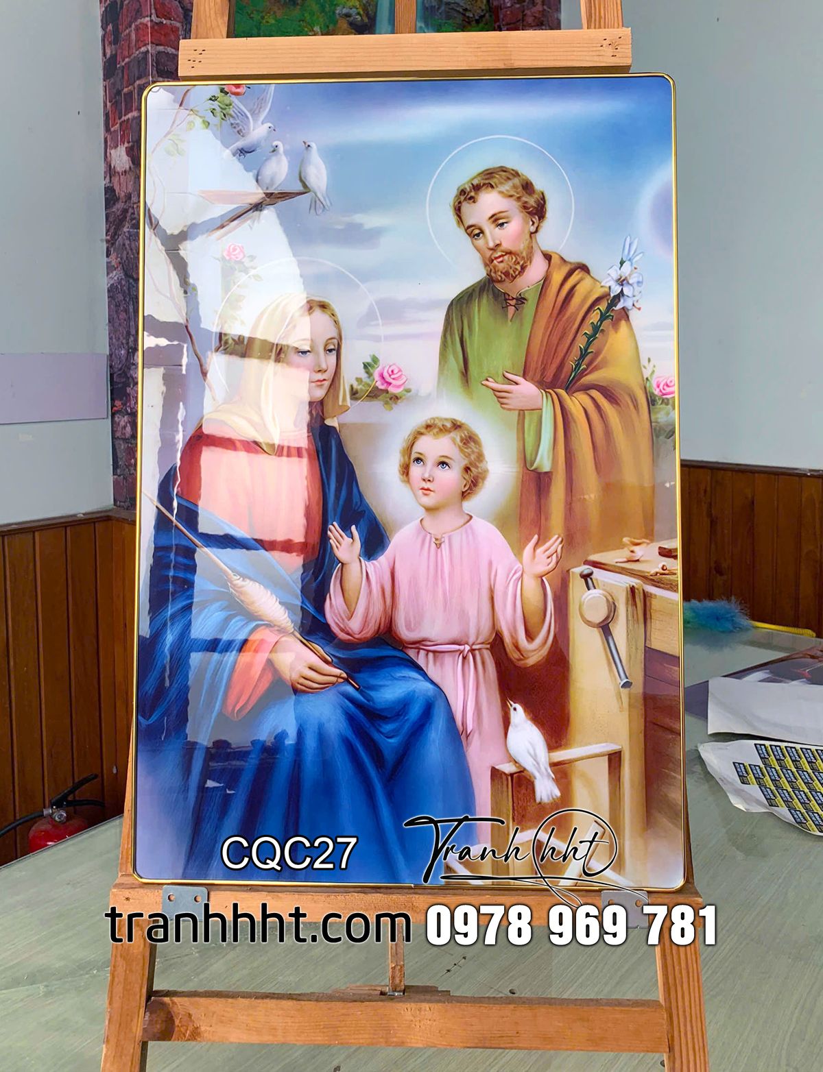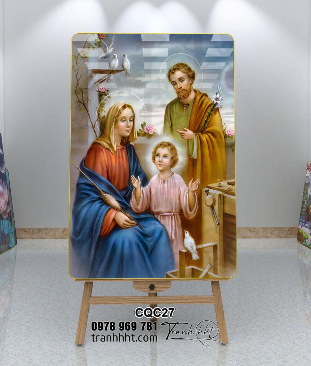 Đặt mua Tranh Công Giáo đức mẹ Maria, tranh chúa Giêsu, thánh Giuse khung ảnh ấm áp tráng gương treo tường CQC27