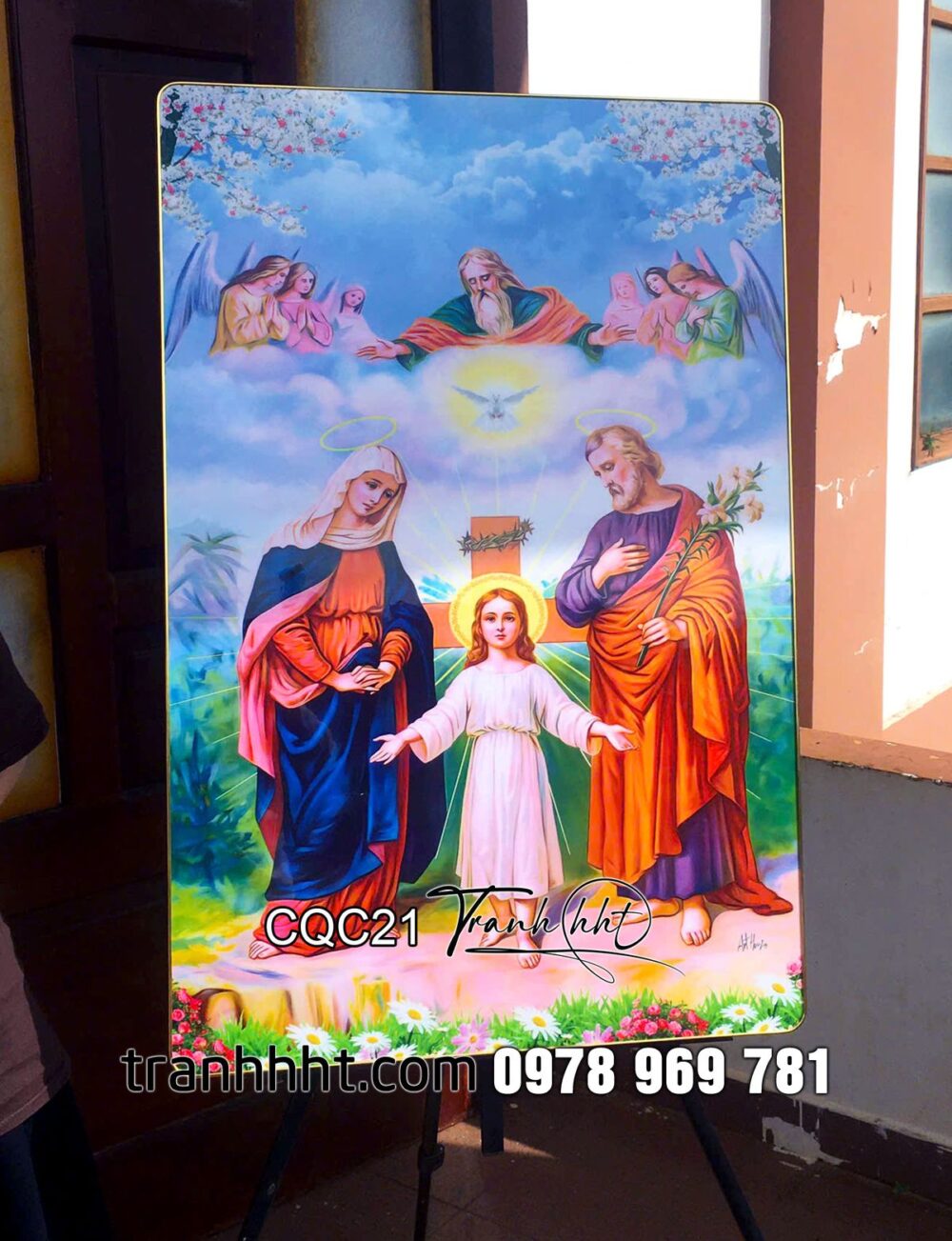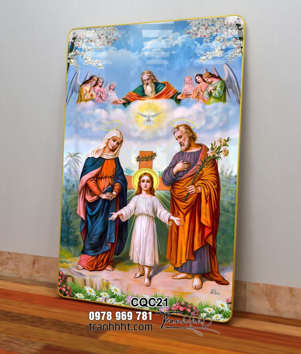 Tranh Công Giáo đức mẹ Maria, tranh chúa Giêsu, thánh Giuse khung cảnh thiêng liêng tráng gương treo tường CQC21