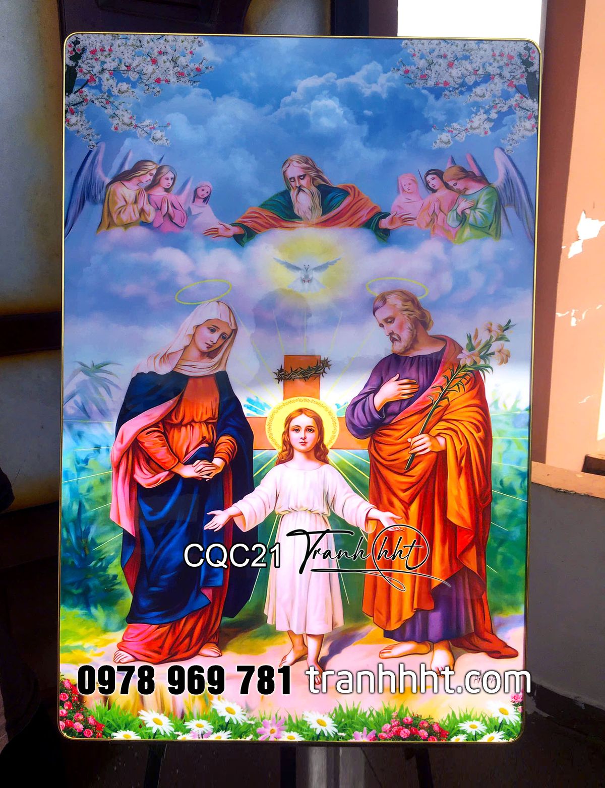 Đặt mua Tranh Công Giáo đức mẹ Maria, tranh chúa Giêsu, thánh Giuse khung cảnh thiêng liêng tráng gương treo tường CQC21