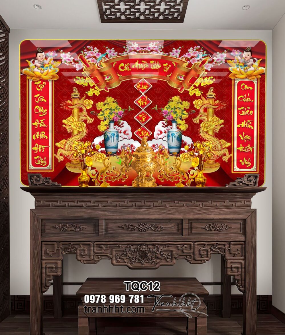 Tranh Tráng Gương treo phòng thờ tổ tiên ông bà, tranh Bàn Thờ, tranh Phòng Thờ Mâm Ngũ Quả, Tranh Đức Lưu Quang, tranh Kính Nhớ Tổ Tiên…