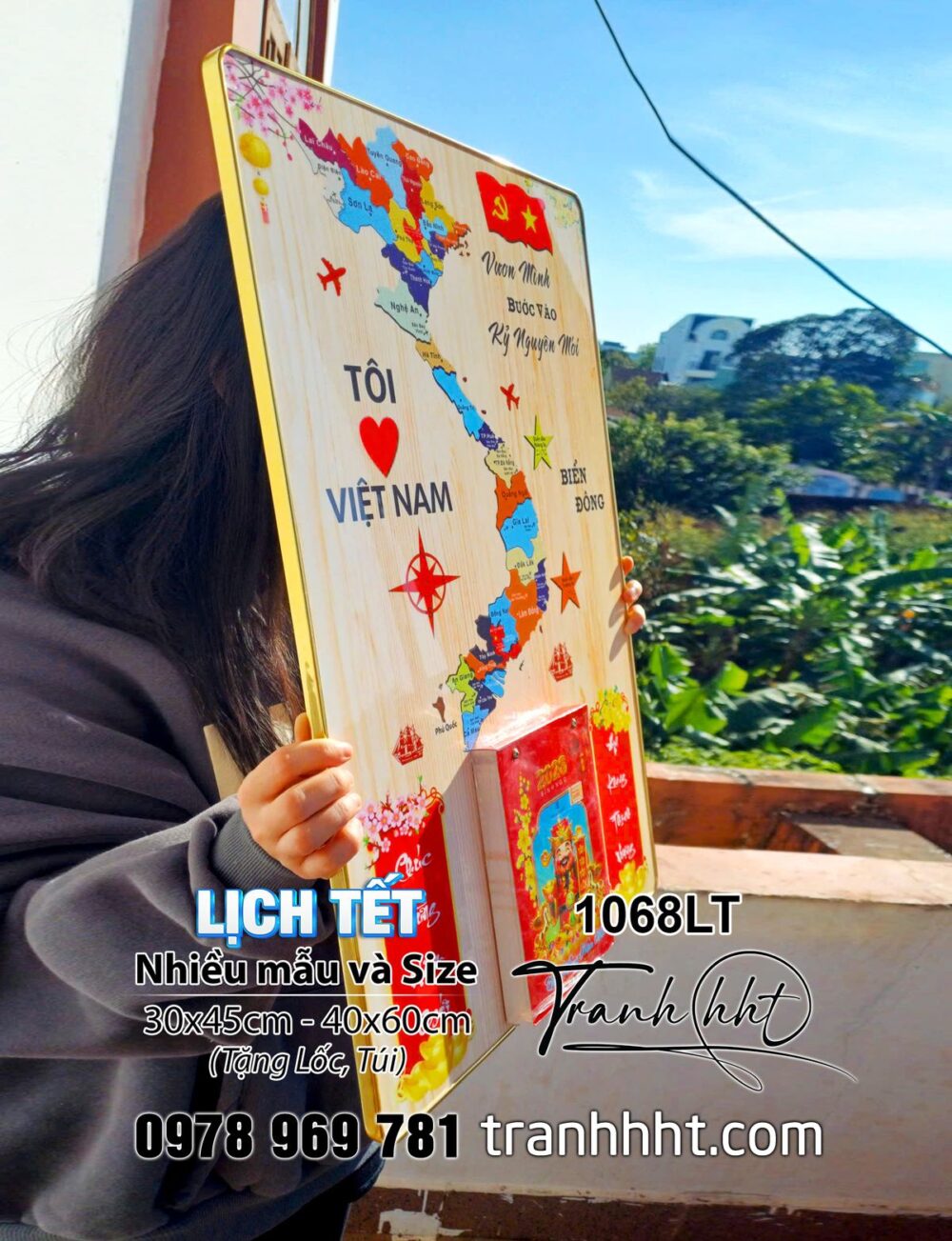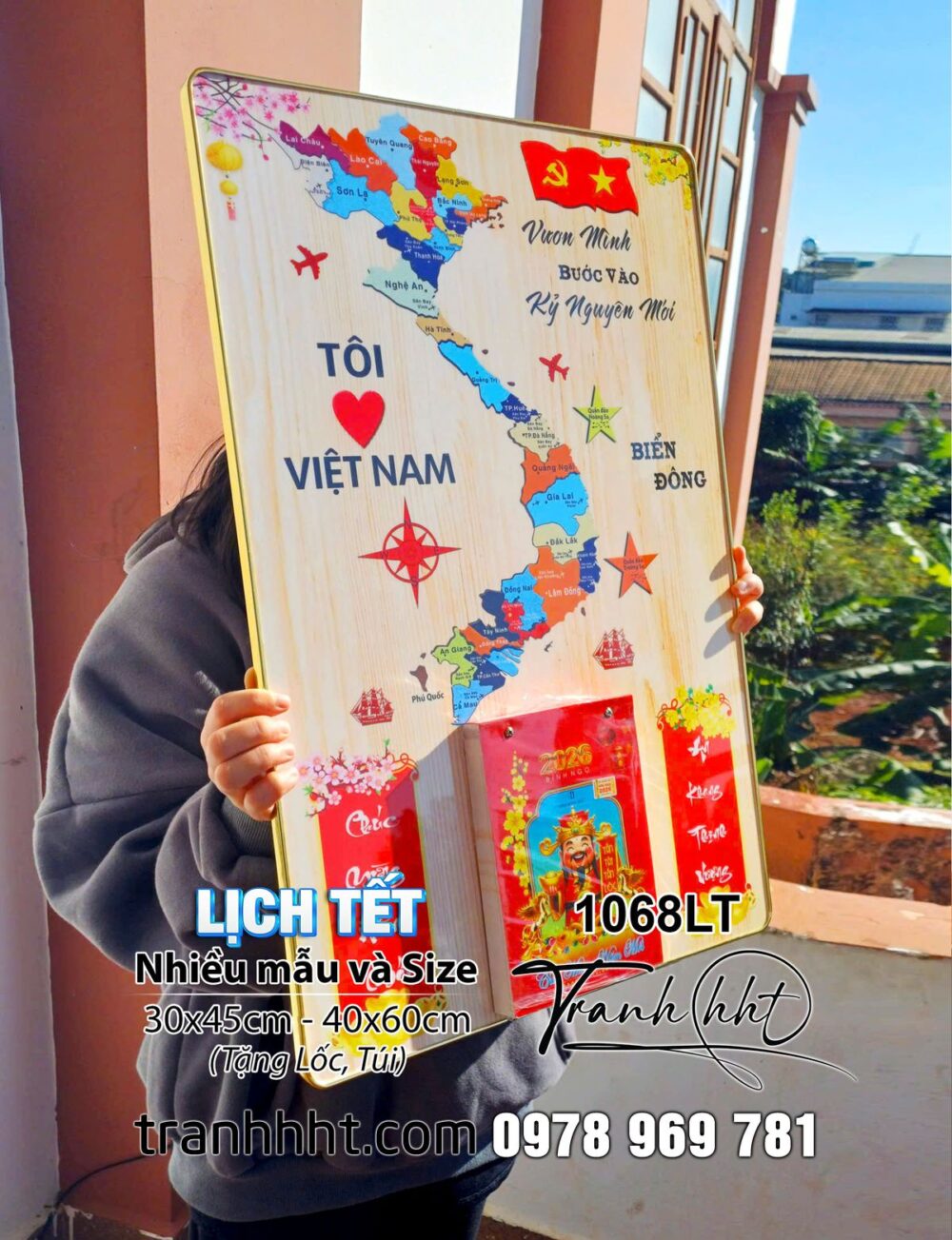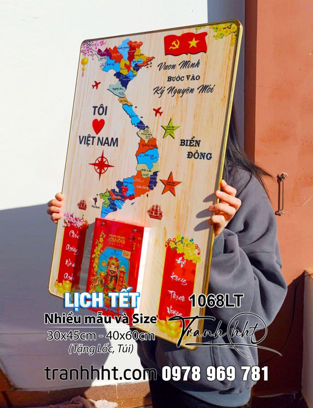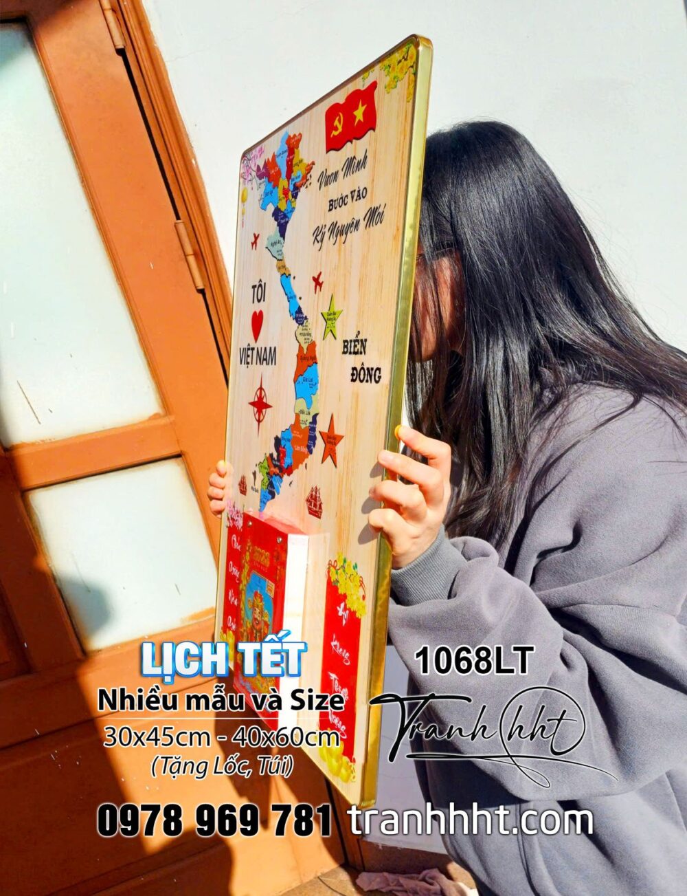 Tranh đốc Lịch bản đồ việt nam, Lịch Tết bản đồ 34 tỉnh, bản đồ Việt Nam, Lịch Tết 2026, Đốc Lịch Tết, Lịch bloc 1068LT
