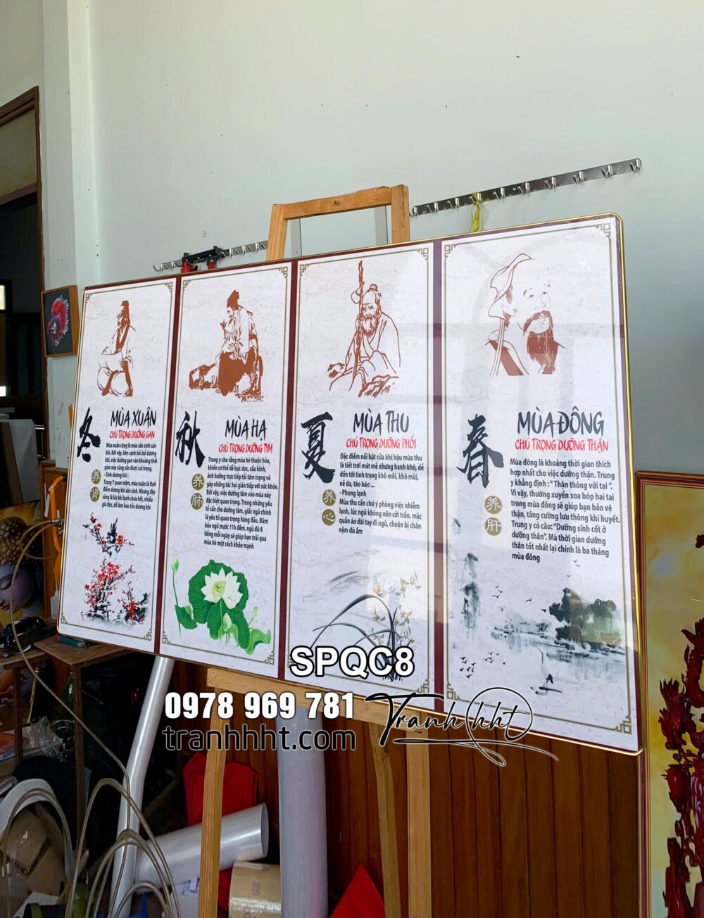 Tranh đông y xuân hạ thu đông, Tranh Spa dưỡng sinh đông y dưỡng từng bộ phận theo mùa tráng gương treo tường SPQC8