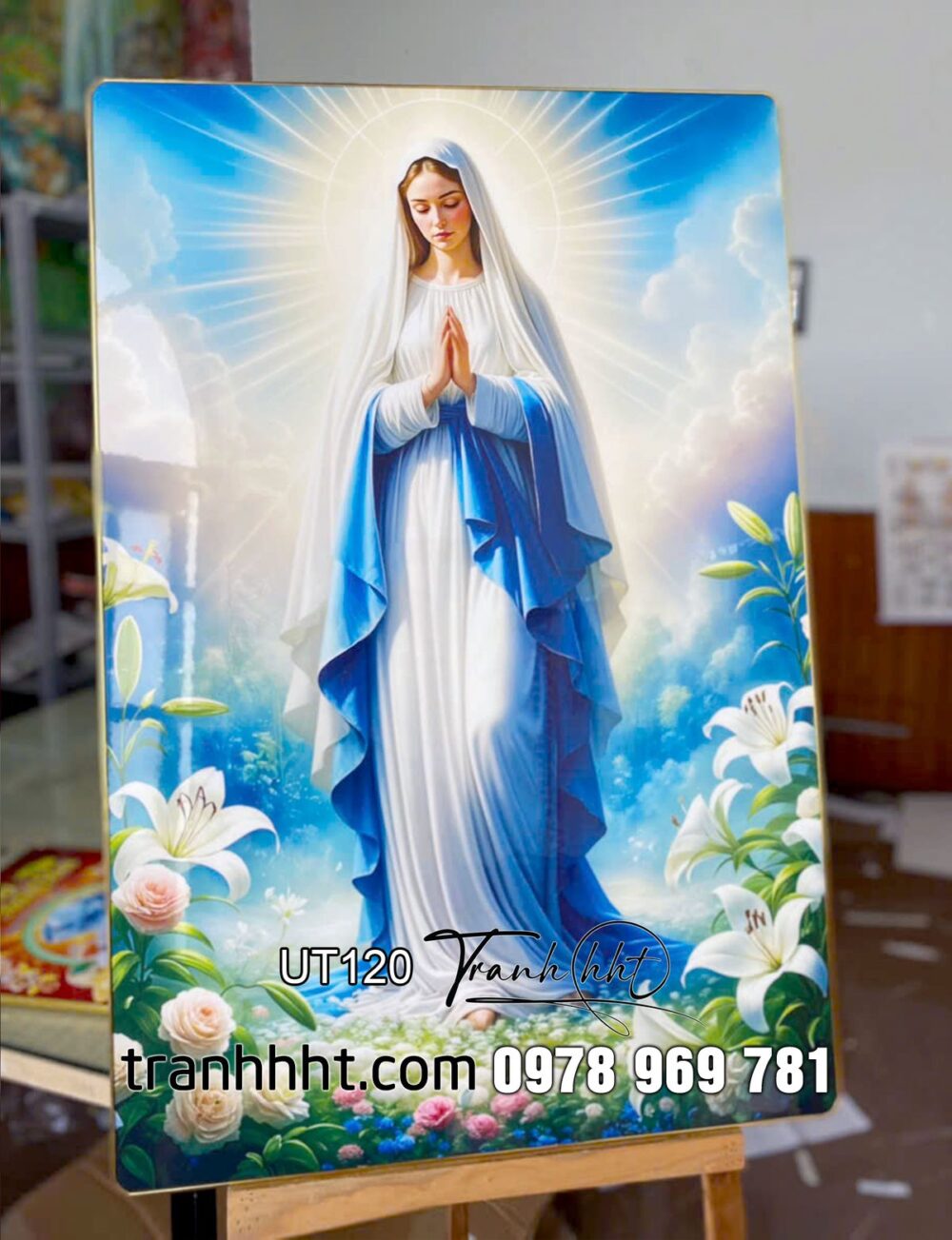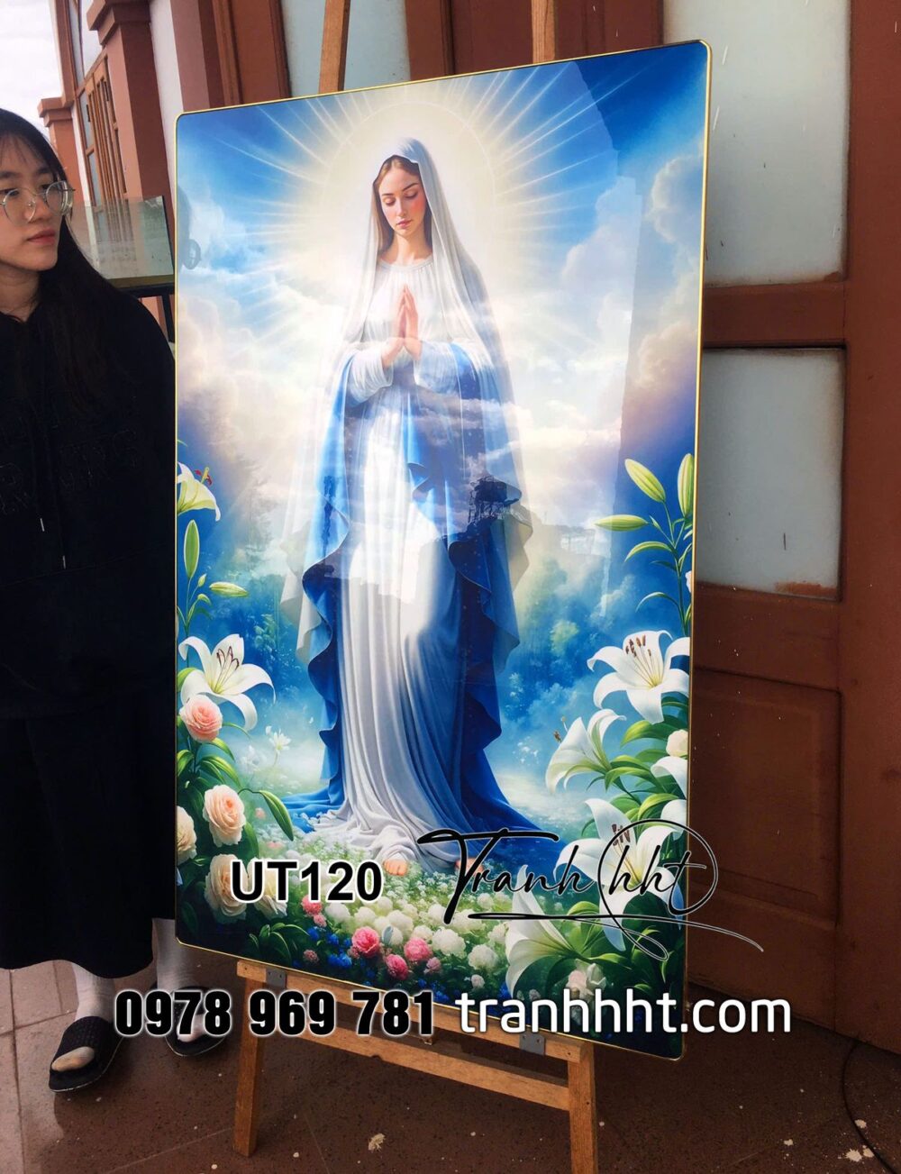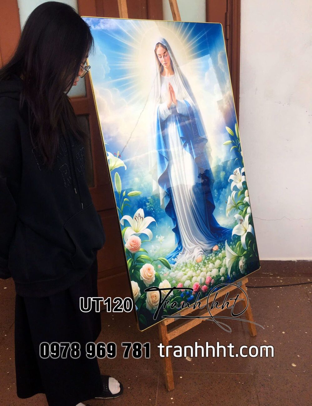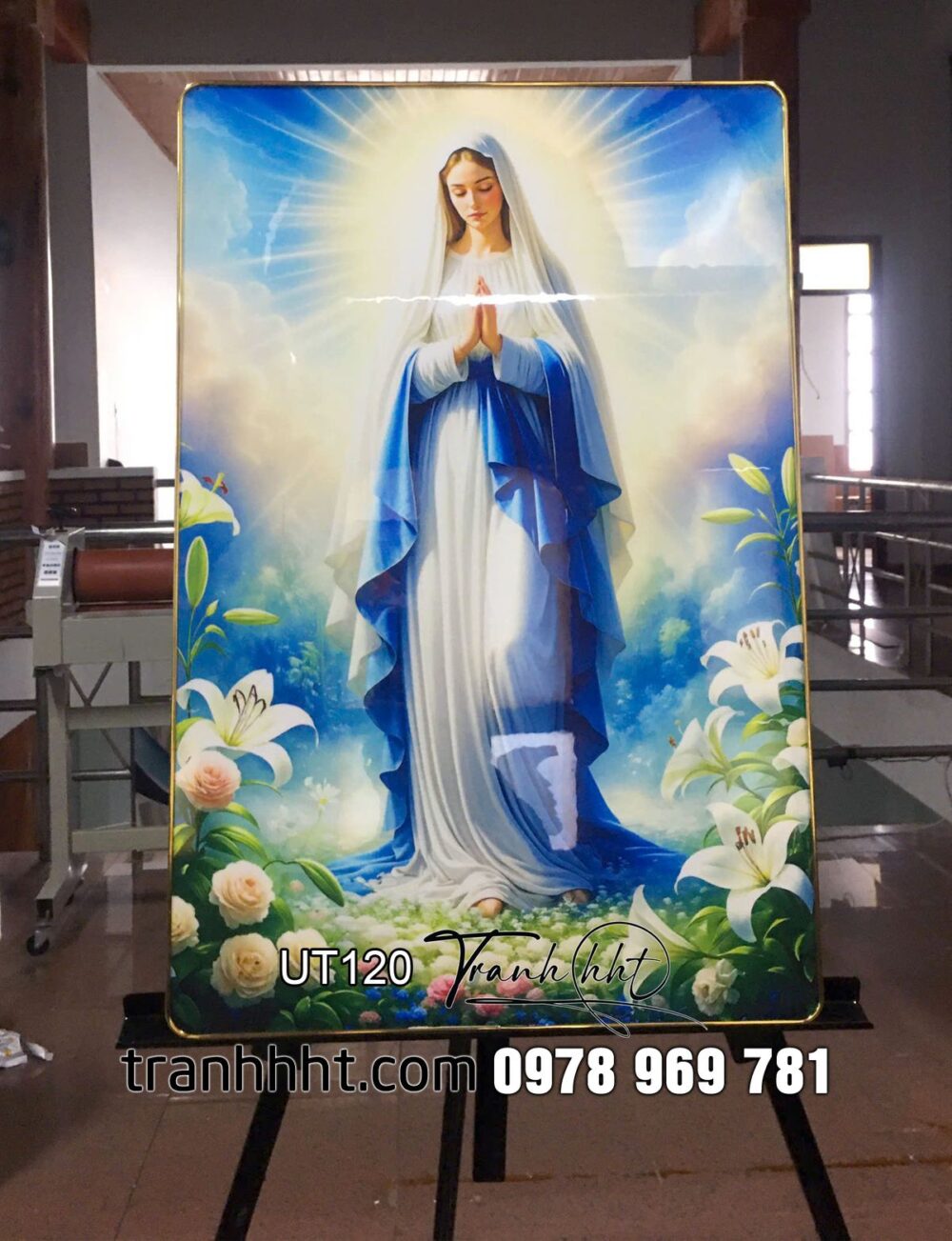 Tranh đức mẹ Maria, tranh công giáo Thiên Chúa Giê su jesus treo tường, Tranh Công giáo Đức mẹ Maria tráng gương UT120