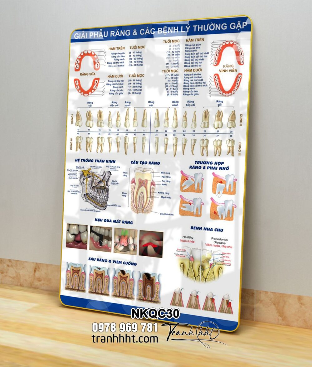 Tranh giải phẫu răng, tranh răng miệng, tranh phòng khám nha, Tranh Nha Khoa giải phẫu răng & các bệnh lí thường gặp tráng gương treo tường NKQC30