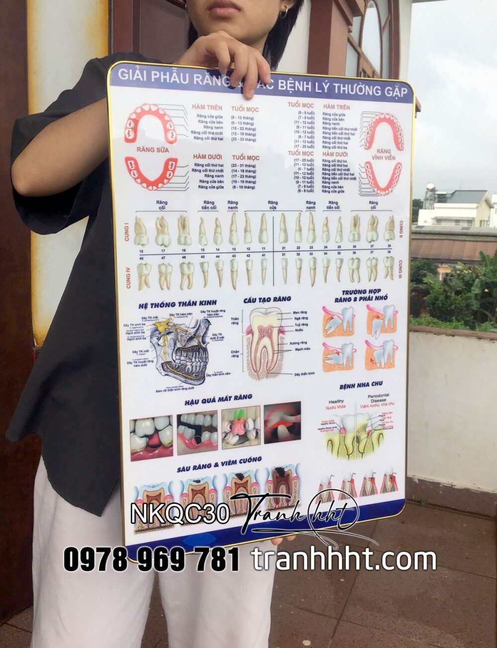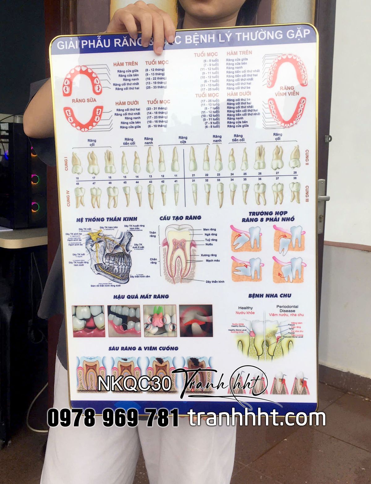 Đặt mua Tranh giải phẫu răng, tranh răng miệng, tranh phòng khám nha, Tranh Nha Khoa giải phẫu răng & các bệnh lí thường gặp tráng gương treo tường NKQC30