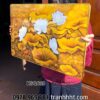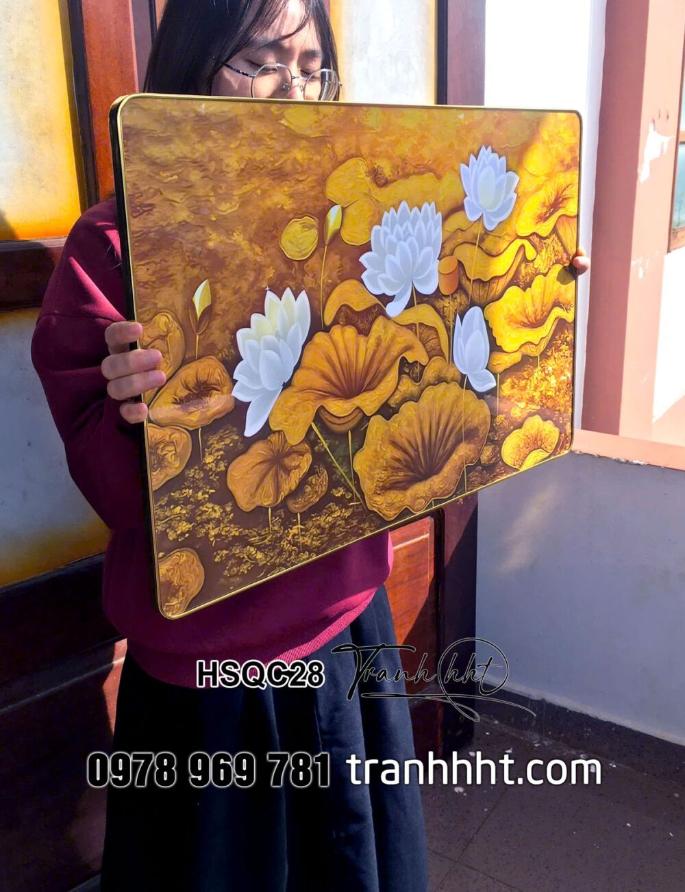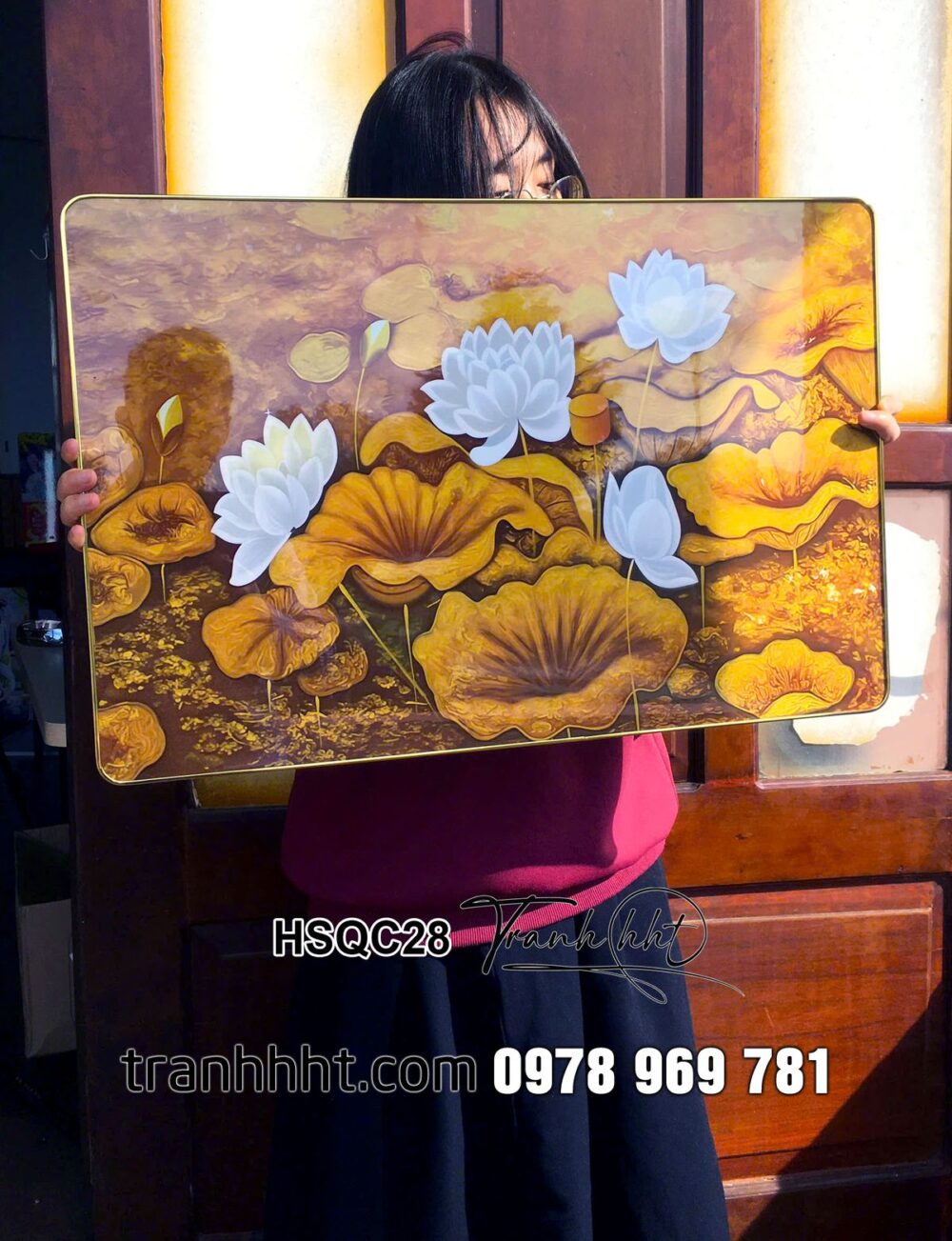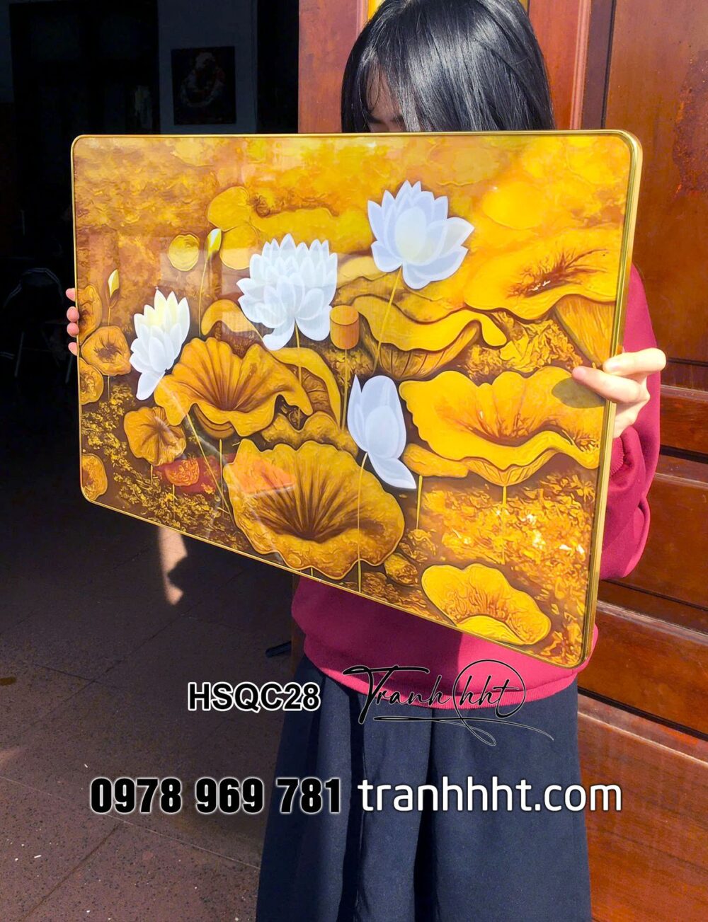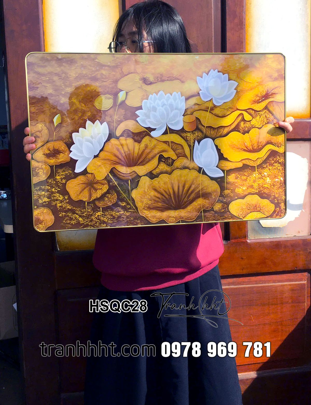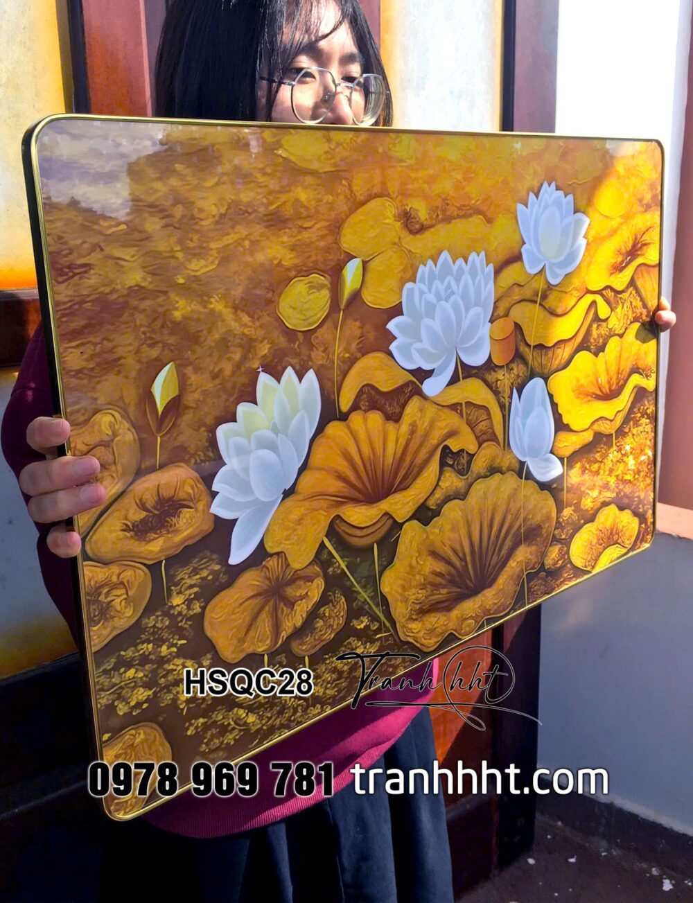 Tranh hoa sen 3d tráng gương, Tranh hoa sen cá chép sen ngọc cổ điển tráng gương treo tường HSQC28