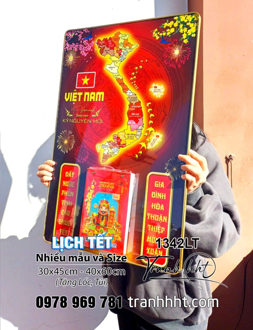 Tranh Lịch bản đồ việt nam, Lịch Tết bản đồ việt nam 34 tỉnh, Bloc lịch bản đồ Việt Nam, Bìa Lịch Tết 2026, Đốc Lịch Tết bản đồ việt nam, Lịch bloc 1342LT