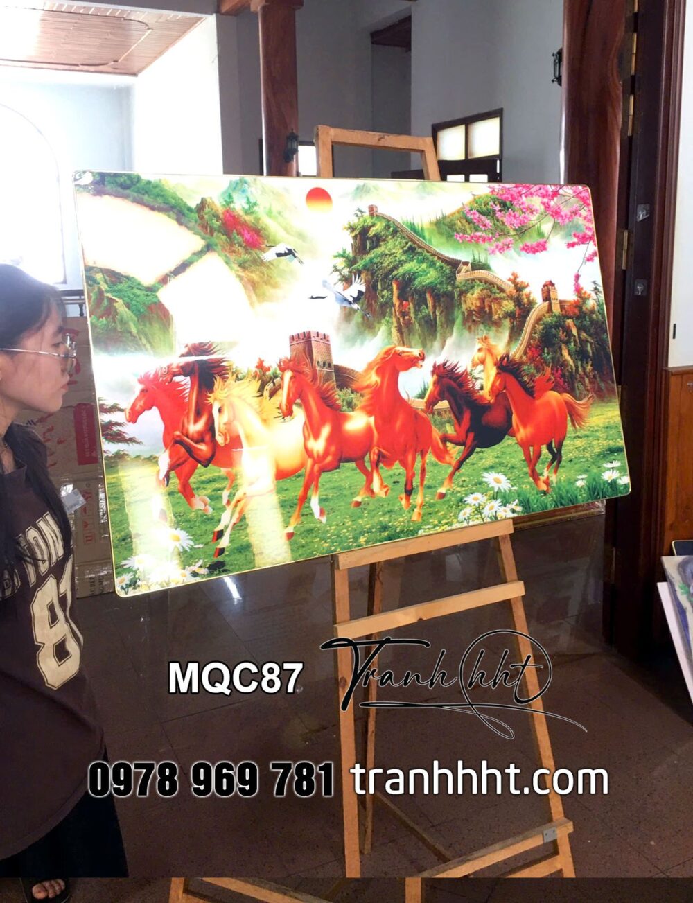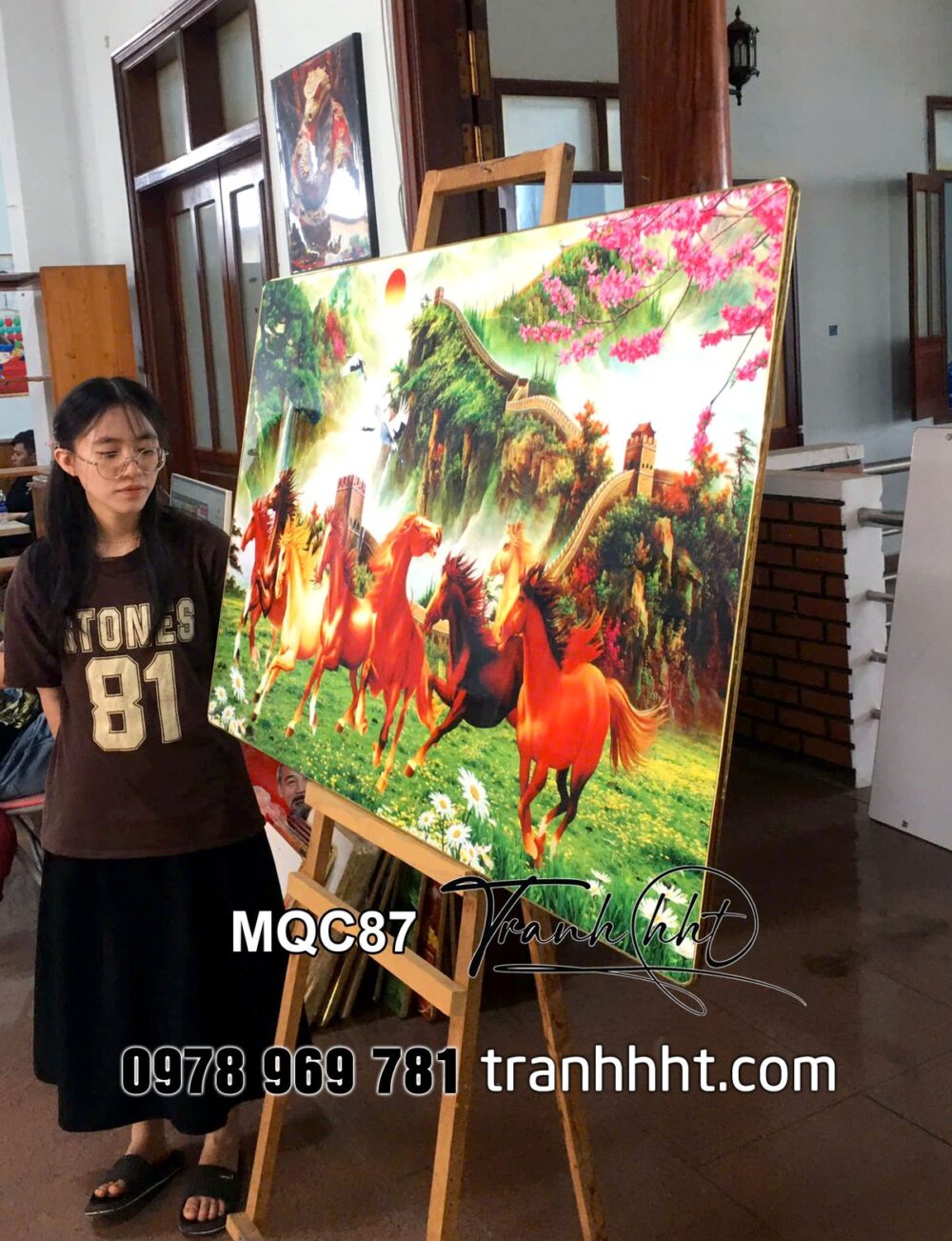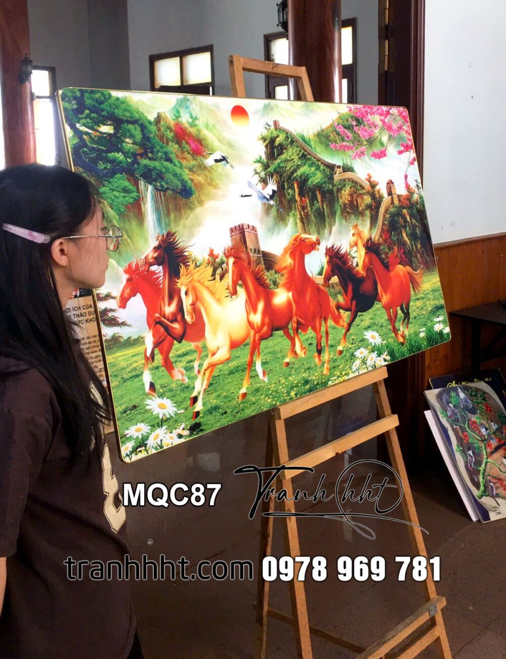 Tranh mã đáo thành công treo tường, tranh ngựa 3d, Tranh treo tường ngựa bát mã kì mã xuất trinh tráng gương MQC87