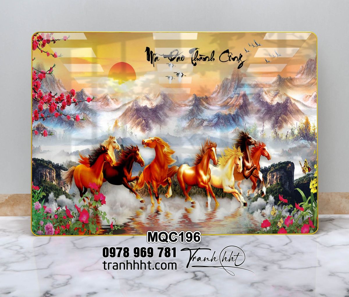 Tranh mã đáo treo tường, tranh ngựa tráng gương, Tranh treo tường ngựa mã đáo thành công dũng mãnh phong thủy tráng gương MQC171