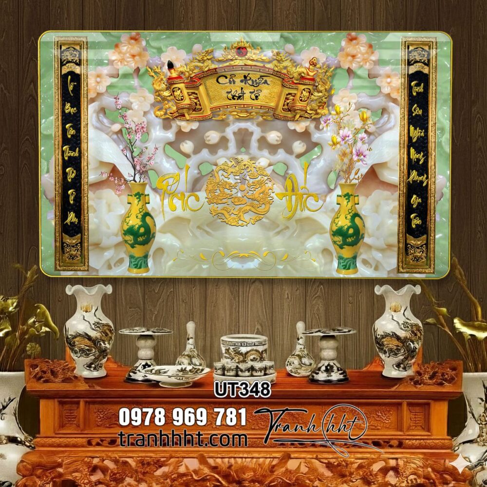 Tranh phòng thờ cửu huyền thất tổ đức lưu quang, tranh thờ tổ tiên, tranh trang trí bàn thờ treo tường, tranh bàn thờ phúc đức lưu truyền tráng gương treo tường UT348