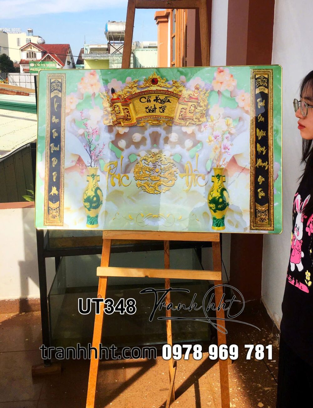 Đặt mua Tranh phòng thờ cửu huyền thất tổ đức lưu quang, tranh thờ tổ tiên, tranh trang trí bàn thờ treo tường, tranh bàn thờ phúc đức lưu truyền tráng gương treo tường UT348