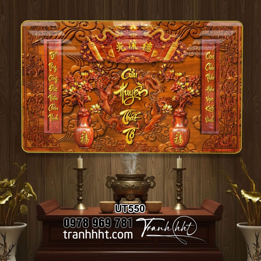 Đặt mua Tranh phòng thờ cửu huyền thất tổ, Tranh Thờ Đức Lưu Quang, tranh bàn thờ, Tranh Gia Tiên tráng gương treo tường UT550