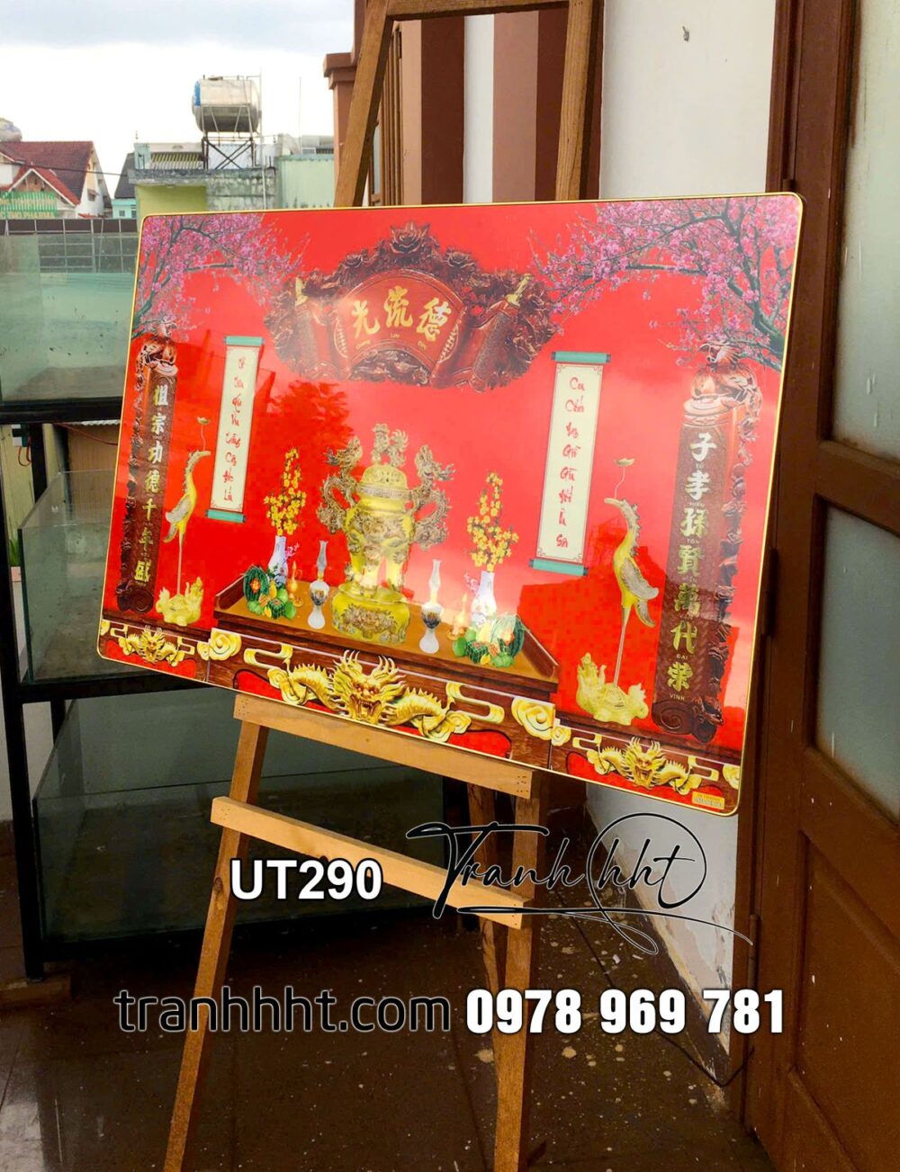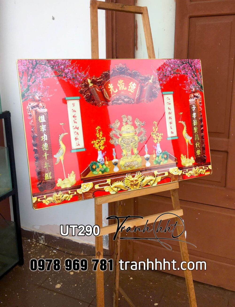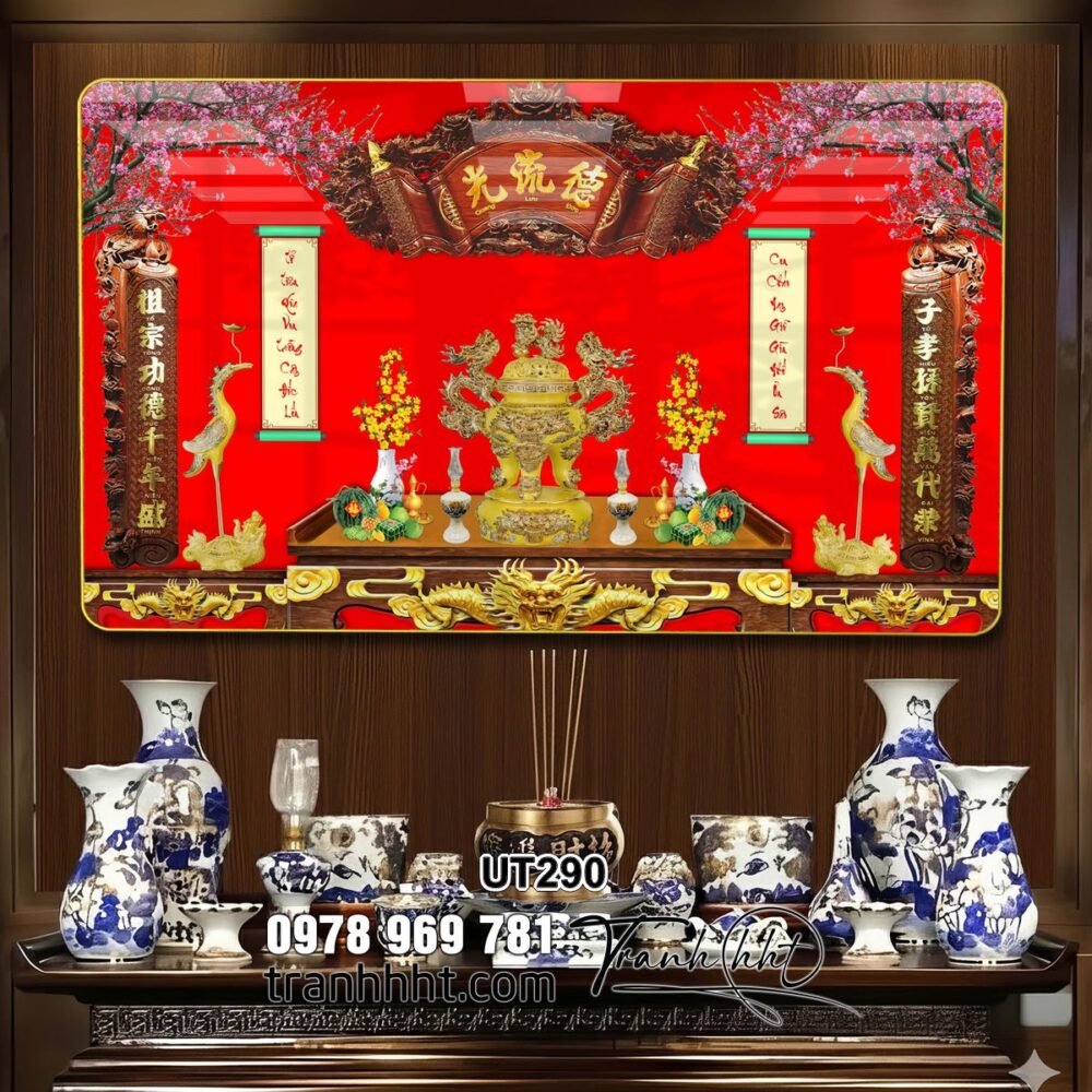 Tranh phòng thờ đức lưu quang, tranh thờ tổ tiên, tranh trang trí bàn thờ treo tường, Tranh phòng thờ cửu huyền thất tổ phúc đức lưu truyền tráng gương treo tường UT290