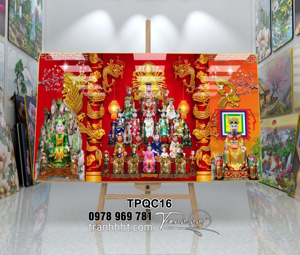Tranh phòng thờ tứ phủ công đồng, bà chúa xứ tôn nghiêm tráng gương treo tường TPQC1