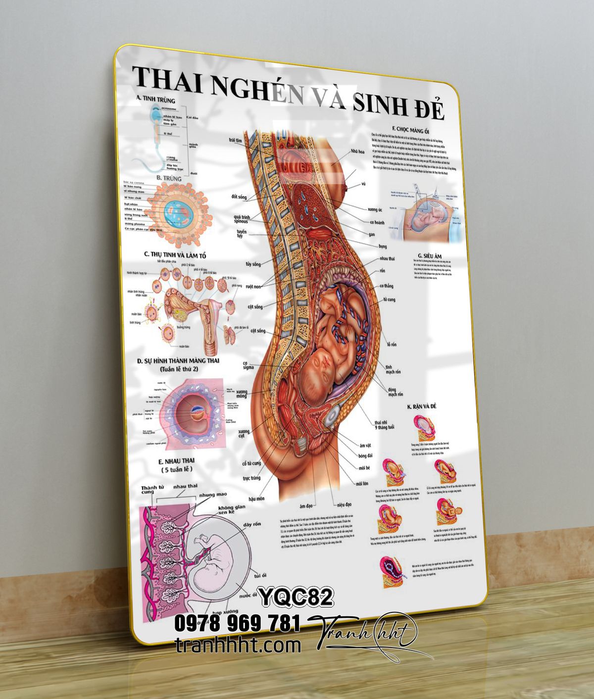 Tranh phụ khoa, tranh phụ sản, Tranh Y khoa cấu tạo quá trình hình thai nhi và sinh đẻ tráng gương treo tường YQC82