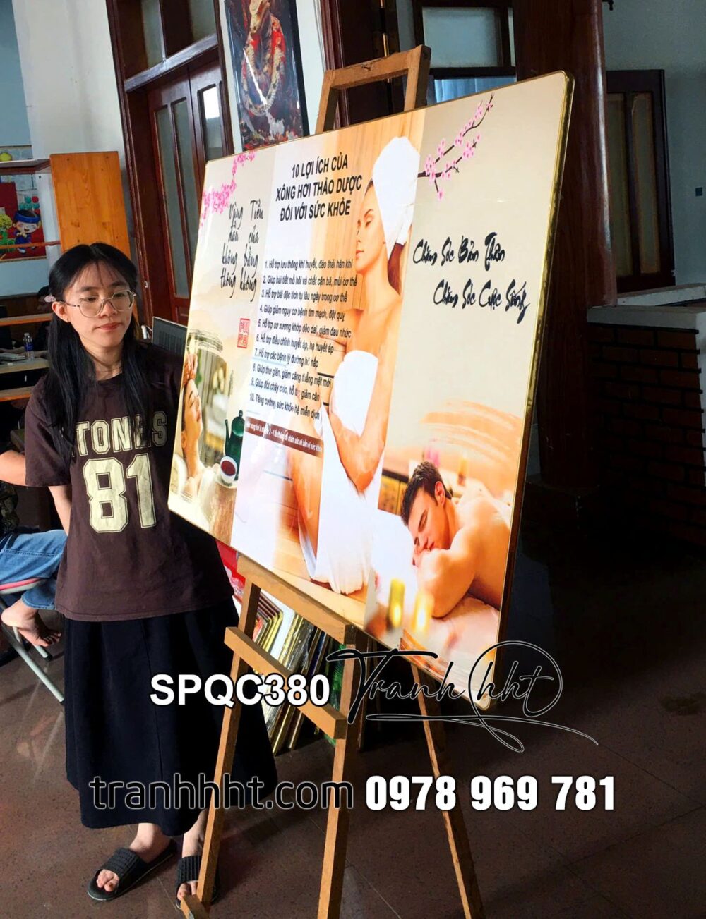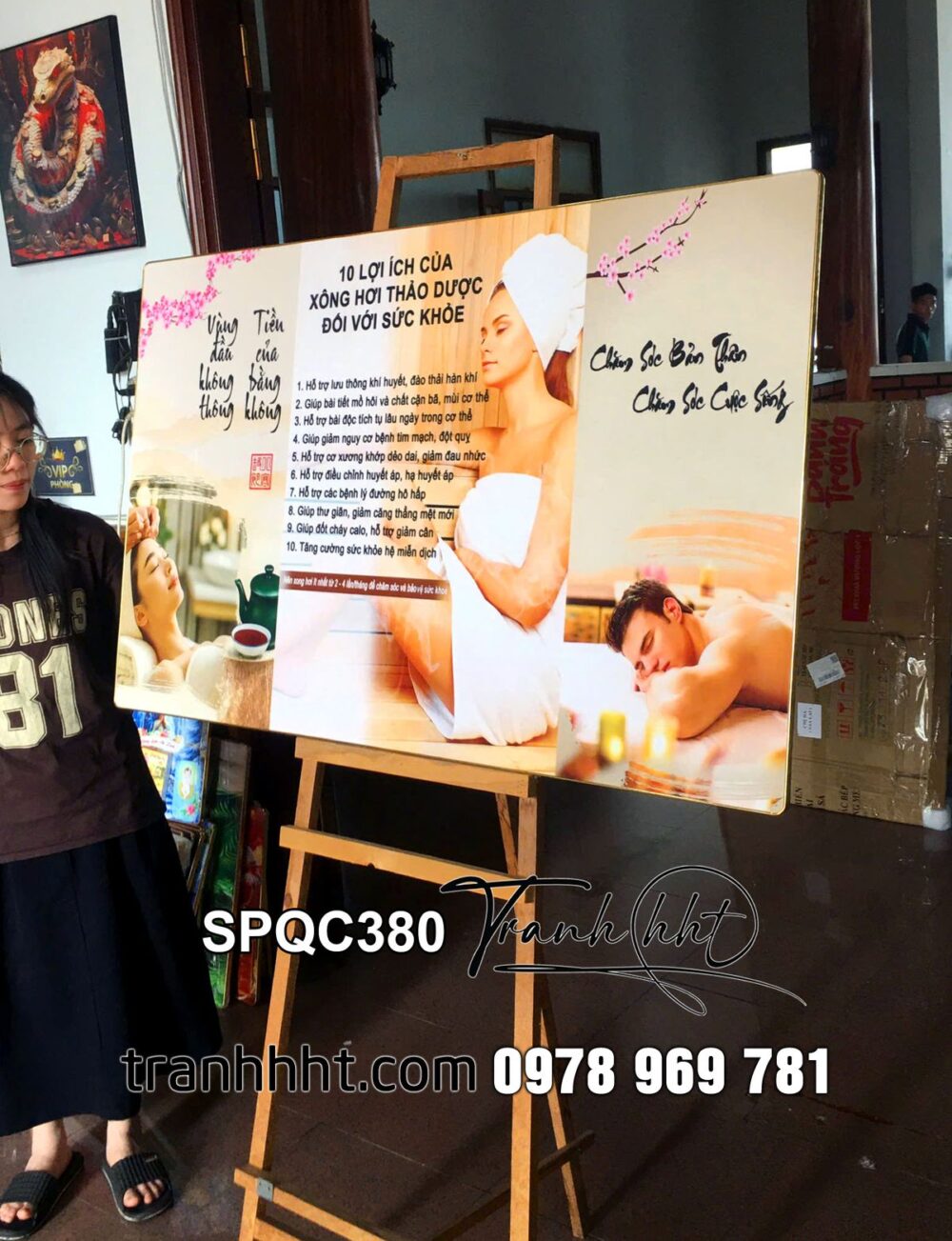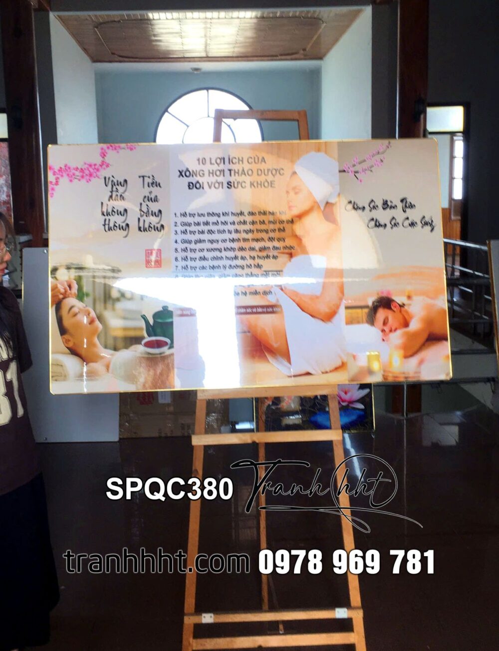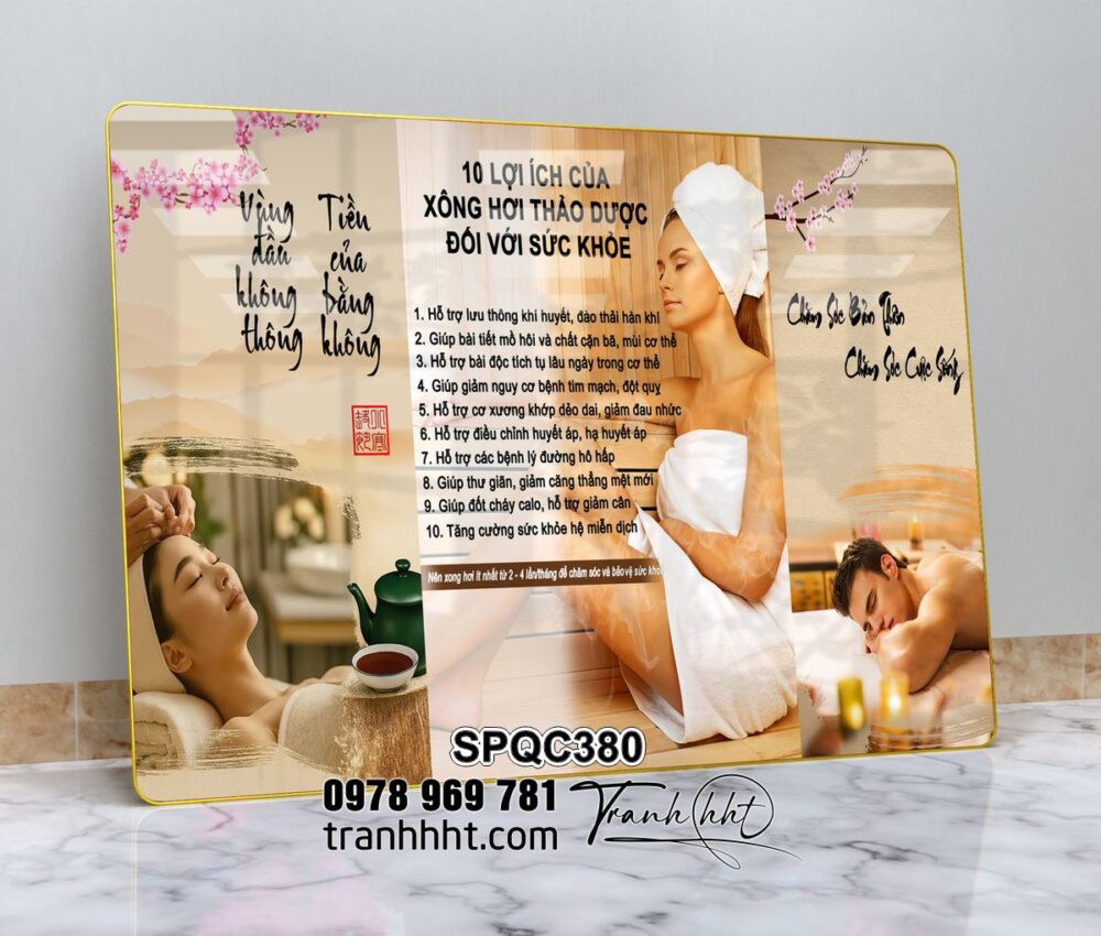 Đặt mua Tranh spa đả thông kinh lạc, Tranh Spa Dưỡng Sinh điều trị 10 lợi ích của xông hơi thảo dược tráng gương SPQC380
