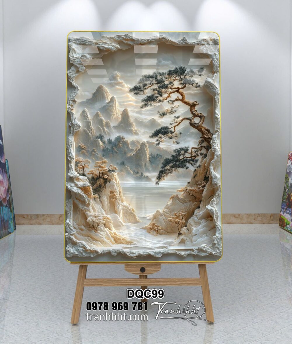 Tranh trang trí phòng khách, tranh tráng gương treo tường, Tranh Decor hiện đại núi non hữu tình tráng gương treo tường DQC99
