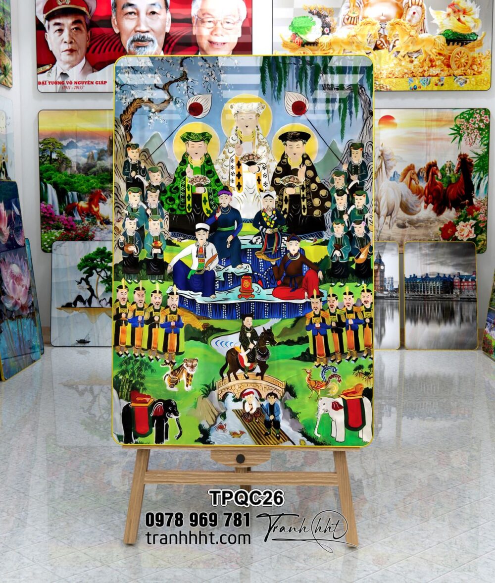 Tranh Tứ Phủ công đồng, tranh bà chúa xứ, tranh chúa sơn trang, Tranh phòng thờ, bàn thờ tứ phủ, bà cháu xứ hầu đồng hồn việt tráng gương treo tường TPQC26