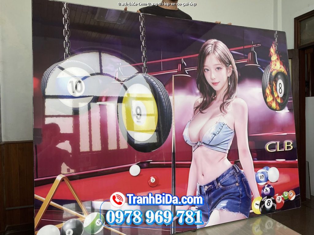 tranh bida tiem trang tri lop xe co gai dep